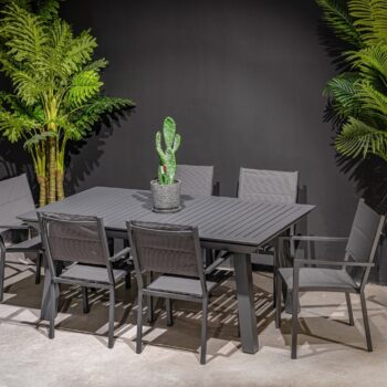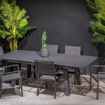 שולחן נפתח העשוי אלומיניום “אל חלד” במידה 175*100 ס”מ, נפתח ל-240 ס”מ.