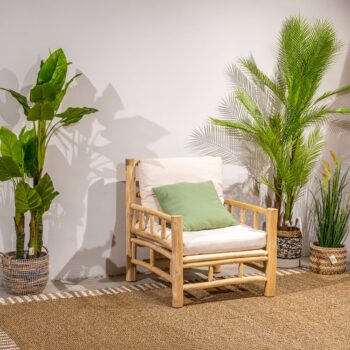 ספת יחיד מפוארת הבנויה מגזעי טיק בשילוב ריפוד רחיץ.