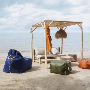 הגזיבו בנוי מעץ טיק בשילוב גג במבוק.