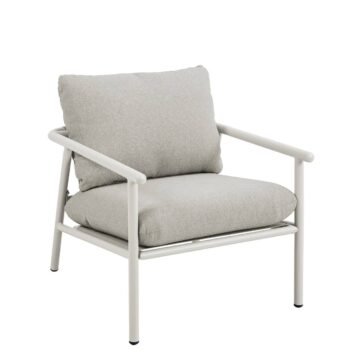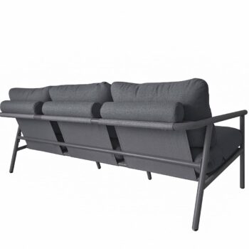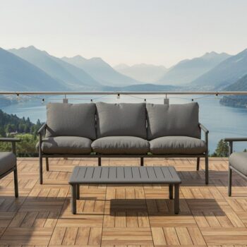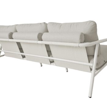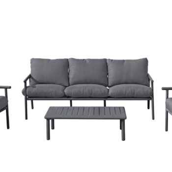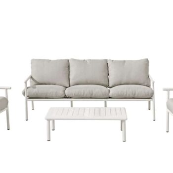 סט ישיבה חוץ במראה טבעי ומעודן, כולל ספת תלת, שתי כורסאות ושולחן קפה.