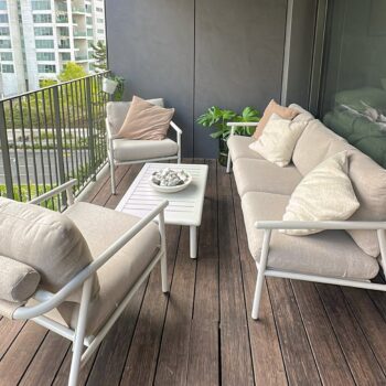 עיצוב שמחבר בין חמימות של עץ למינימליזם עכשווי, מושלם לגינה או למרפסת מעוצבת.
