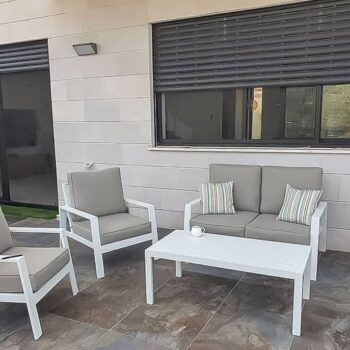 המערכת בנויה מאלומיניום “אל חלד” עבה ומאסיבי בשילוב ריפוד חוץ איכותי ורחיץ.