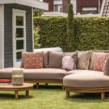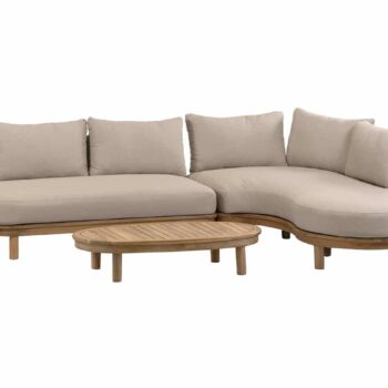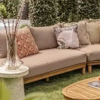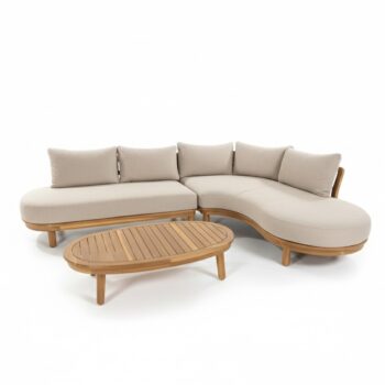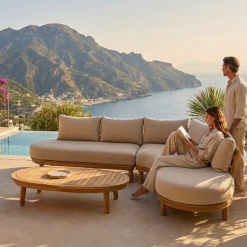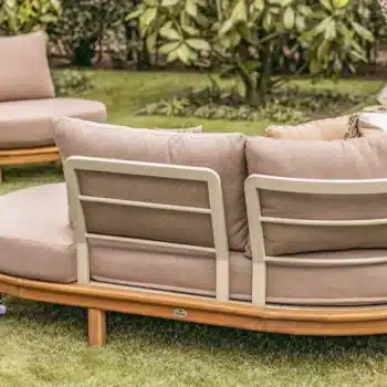 סט ישיבה מודולרי המיועד לחללי חוץ, בעיצוב רך ומזמין שמשלב בין פונקציונליות גבוהה לאסתטיקה טבעית ונקייה.