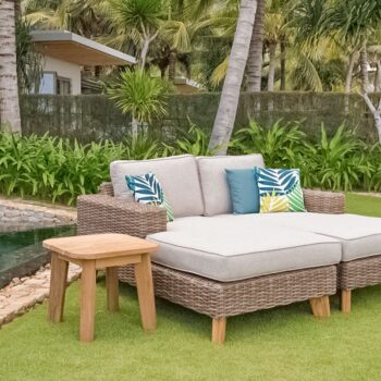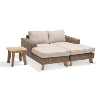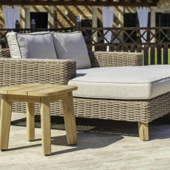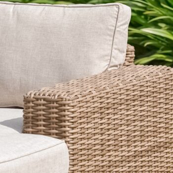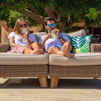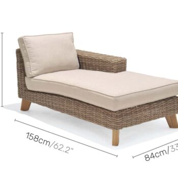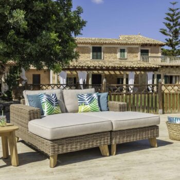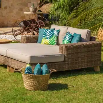 מיטת רביצה מעוצבת ומהממת במיוחד הבנויה משלדת אלומיניום “אל חלד” בחפוי ראטן סינטטי עבה דמוי טבעי.