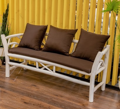 הספסל בנוי מענפי עץ טיק צבועים בלבן עתיק.