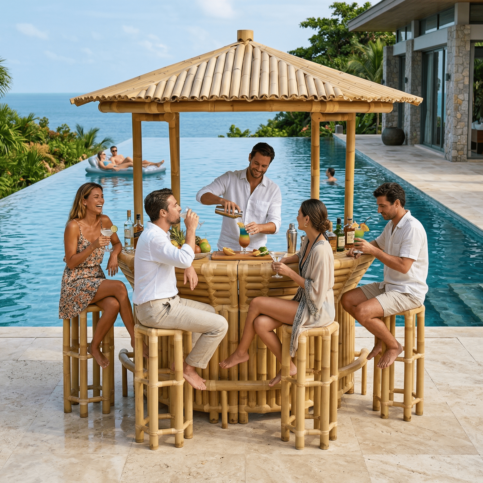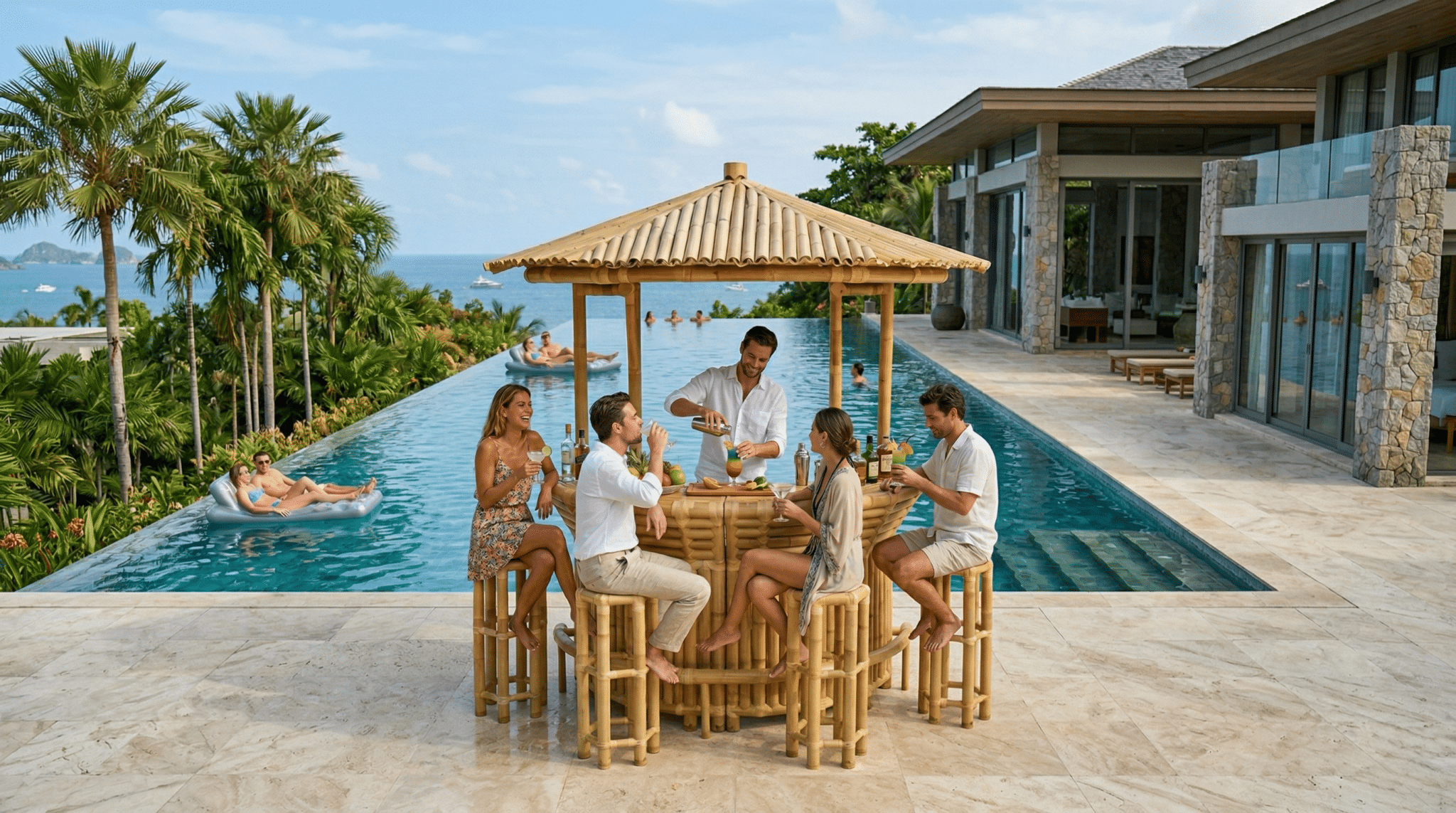 בר משקאות ענק, איכותי ומיוחד בצורת חצי ירח.