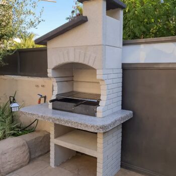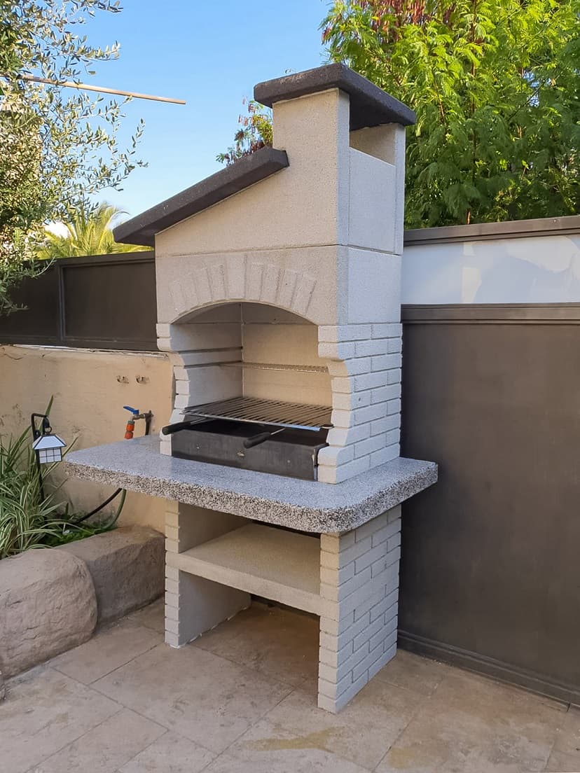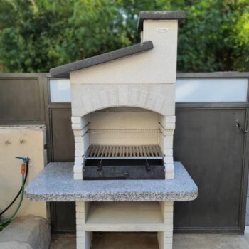 מבנה הגריל עשוי מחומר מיוחד דחוס ועמיד (שיש MARMOTECH), דמוי לבנים בצבע לבן אפרפר.