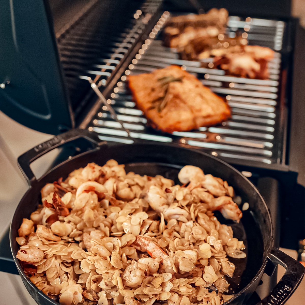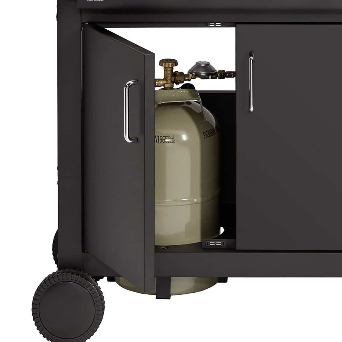 מסגרת מחוזקת ויציבה הכוללת 2 מדפי צד שיספקו מקום אחסון לתבלינים, רטבים ולמגש.