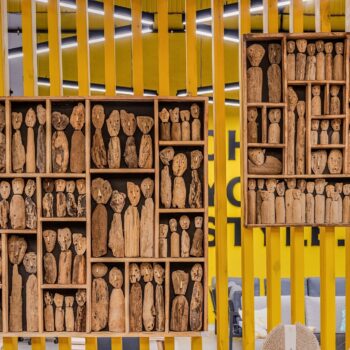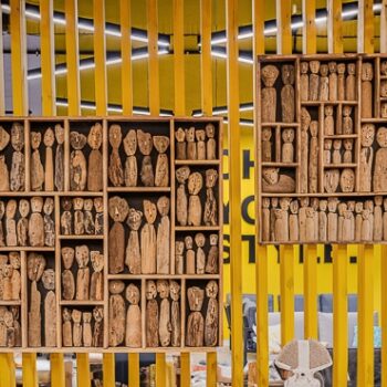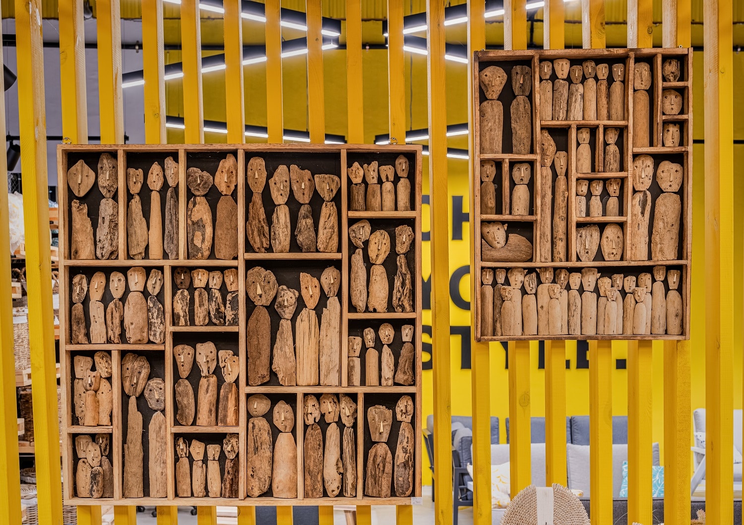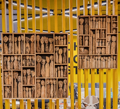בנויה מעץ סחף אשר יוצרים תמונה משפחתית.