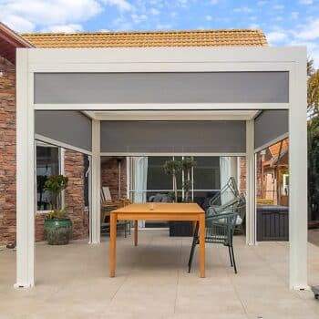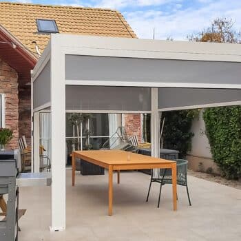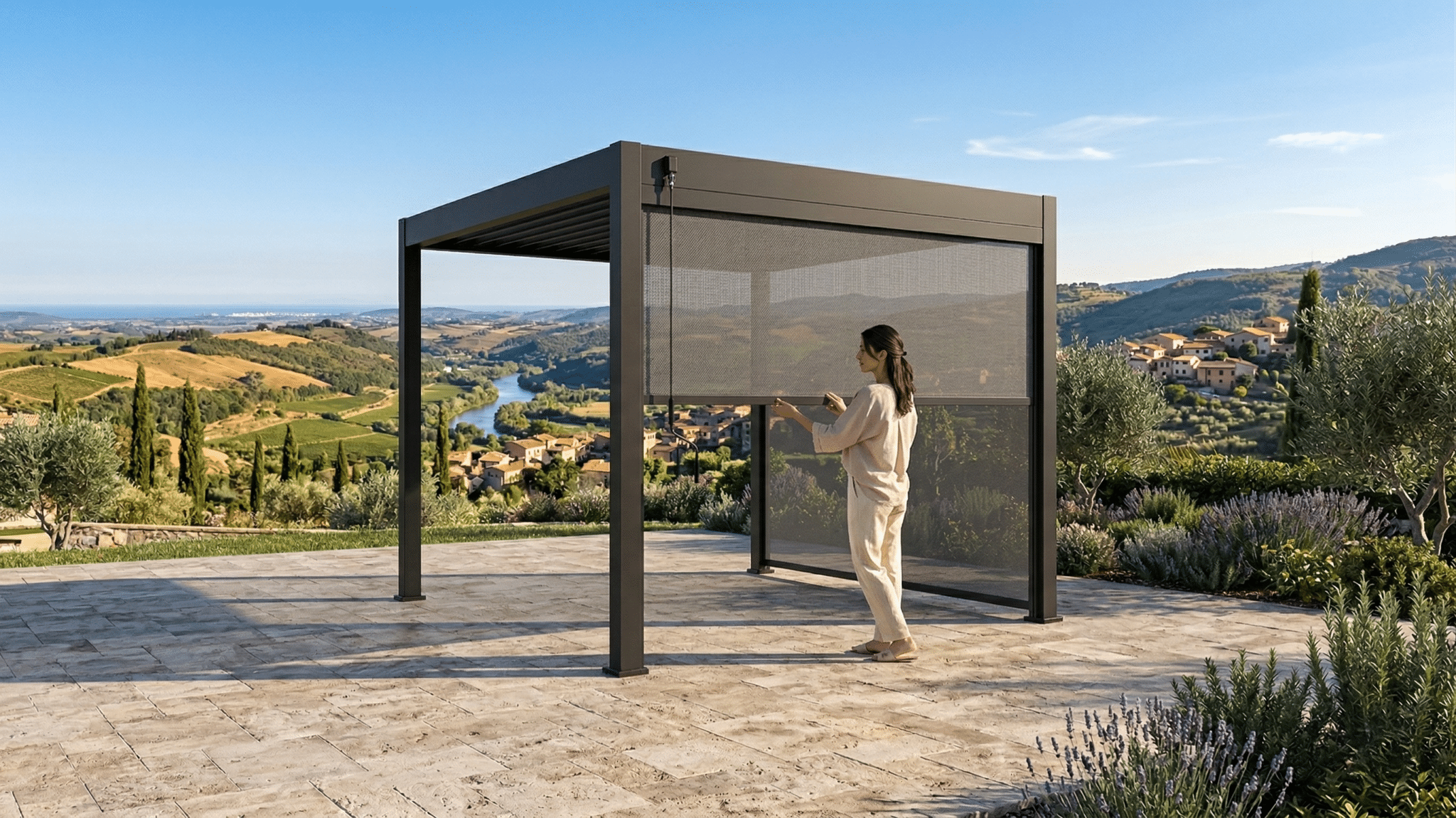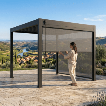 וילון גלילה לפרגולות אלומיניום מהדגמים: נאו, פלוס, ביו ופריים.