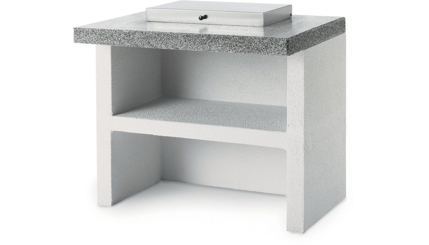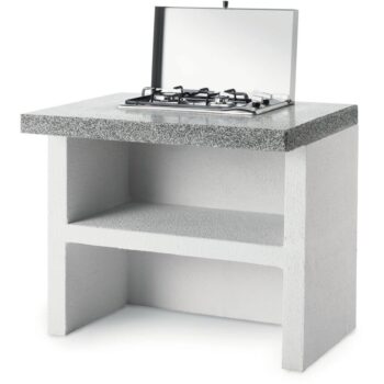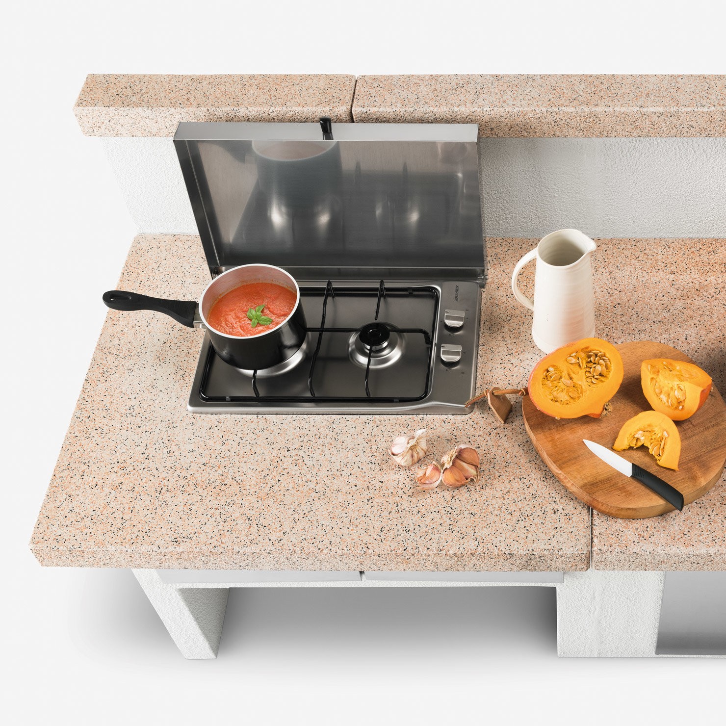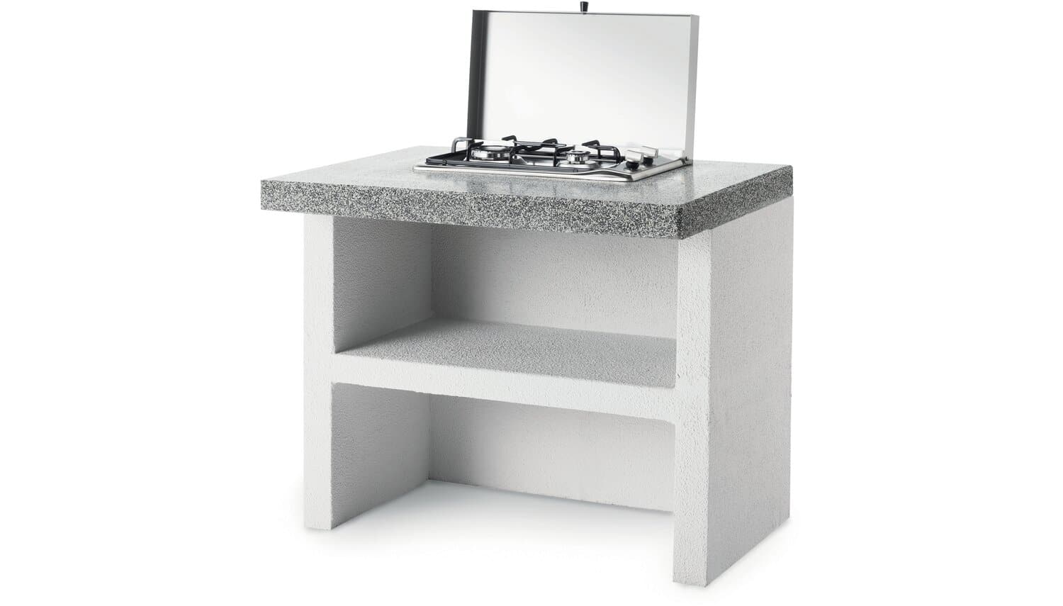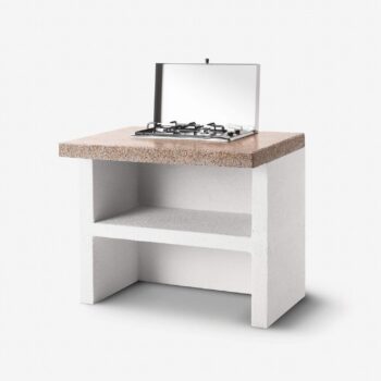 יחידת כיריים גז 2 מבערים הבנויה מבטון מחוזק עם משטח שיש גרניט מוחלק.