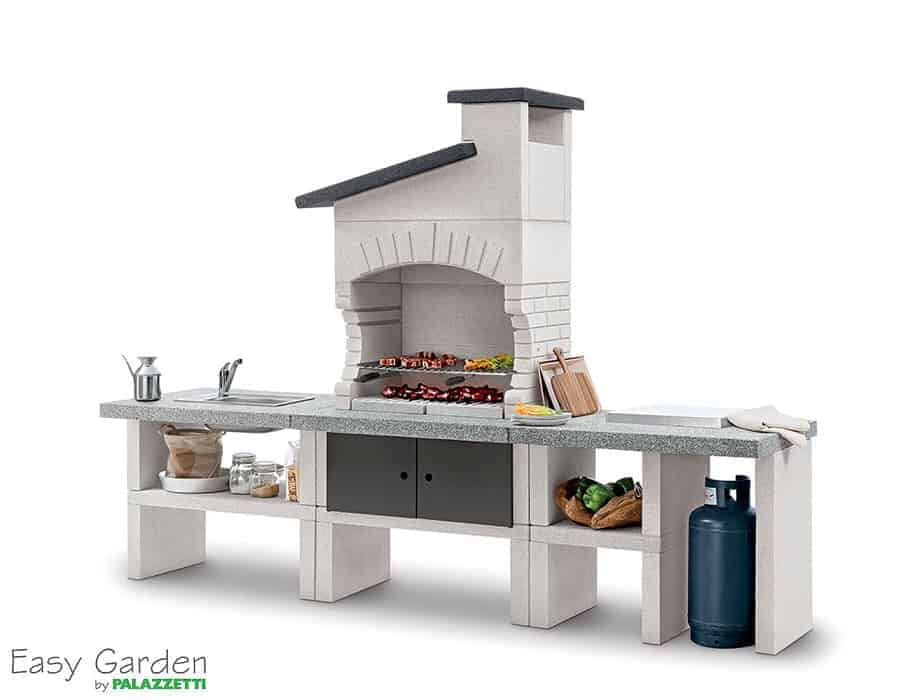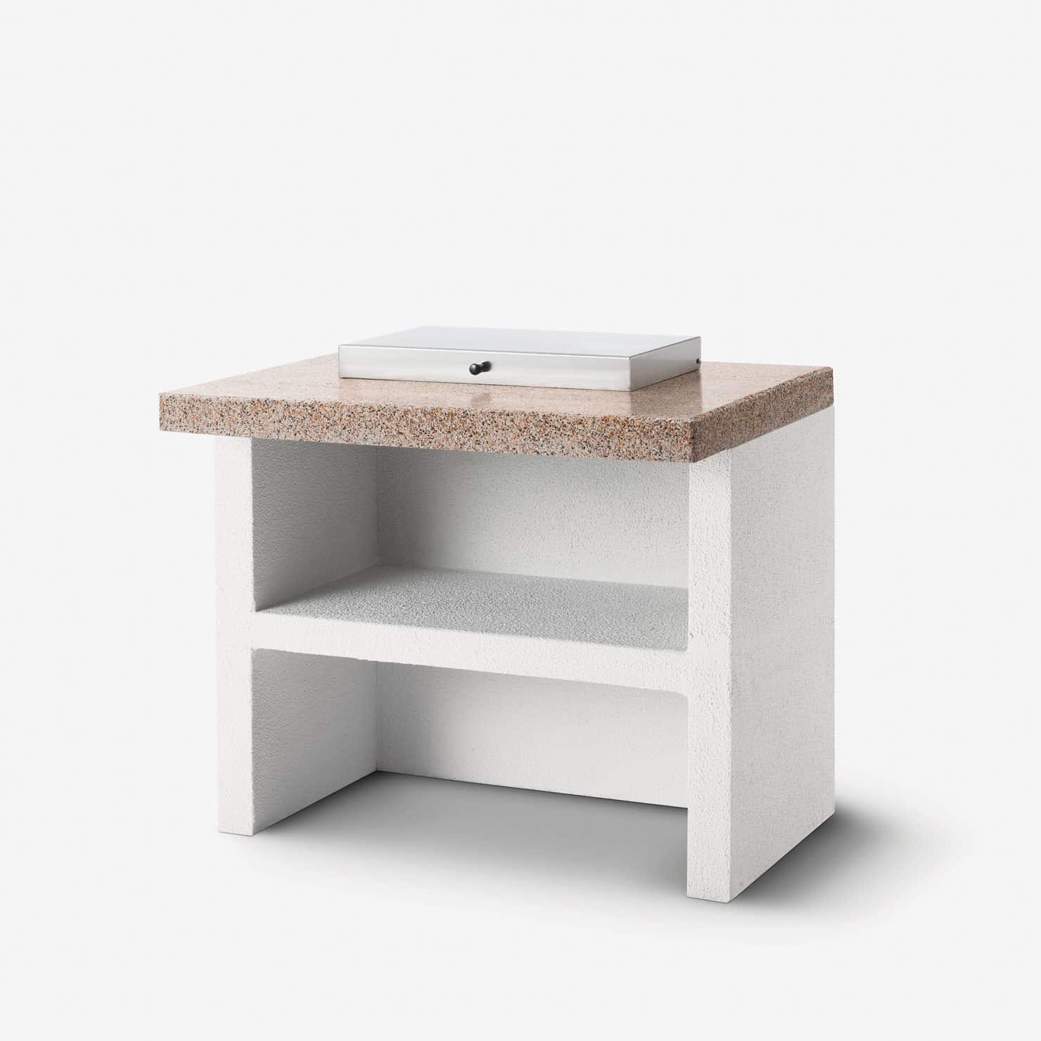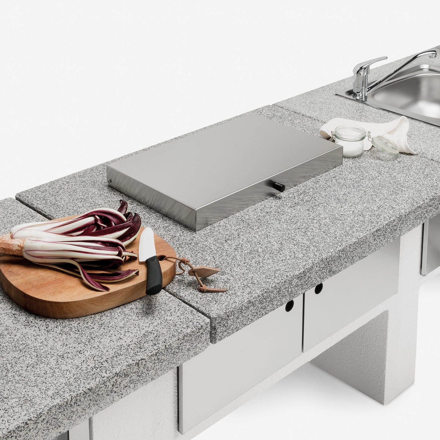 יחידת כיריים גז 2 מבערים הבנויה מבטון מחוזק עם משטח שיש גרניט מוחלק.