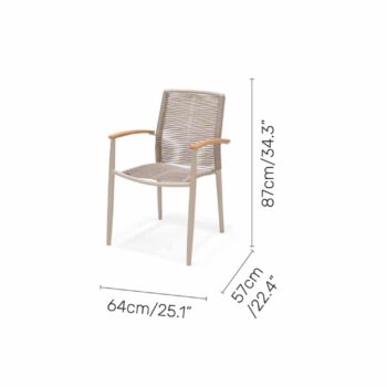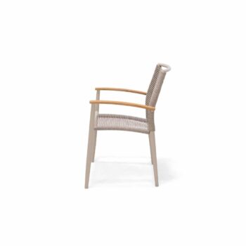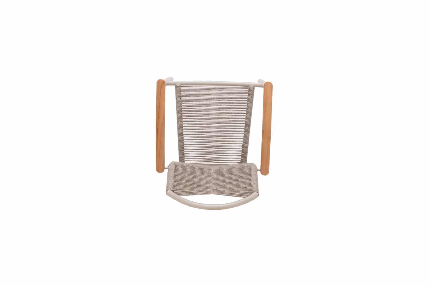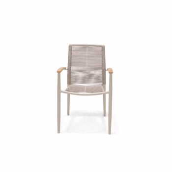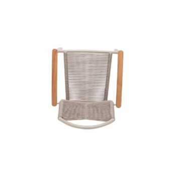 שזירת החבלים מעניקה לכיסא מראה ייחודי ומעודכן, והגב המשופע מעוצב לנוחות אופטימלית גם בישיבה ממושכת.