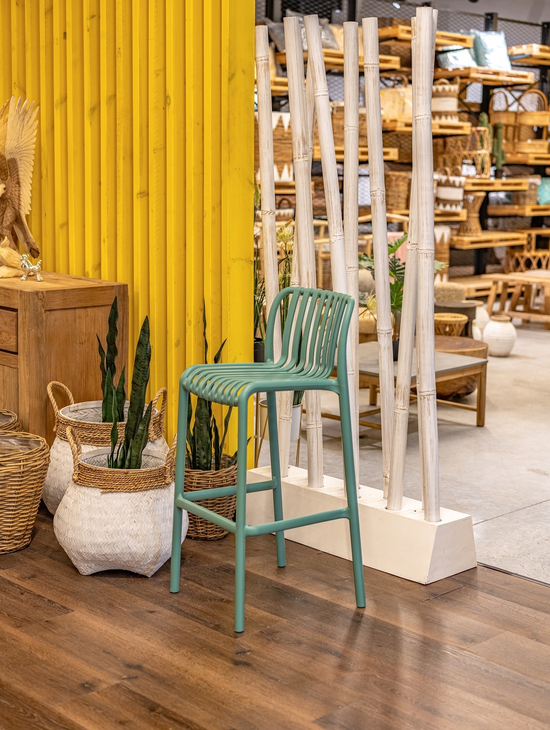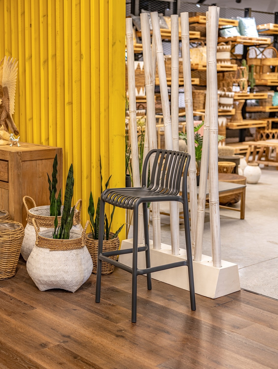 כיסא בר מעוצב עשוי פלסטיק קשיח ומסיבי.