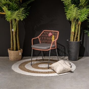 חבלים טרקוטה (אדום ורדרד), ריפוד אפור, שלדה אפורה כהה.