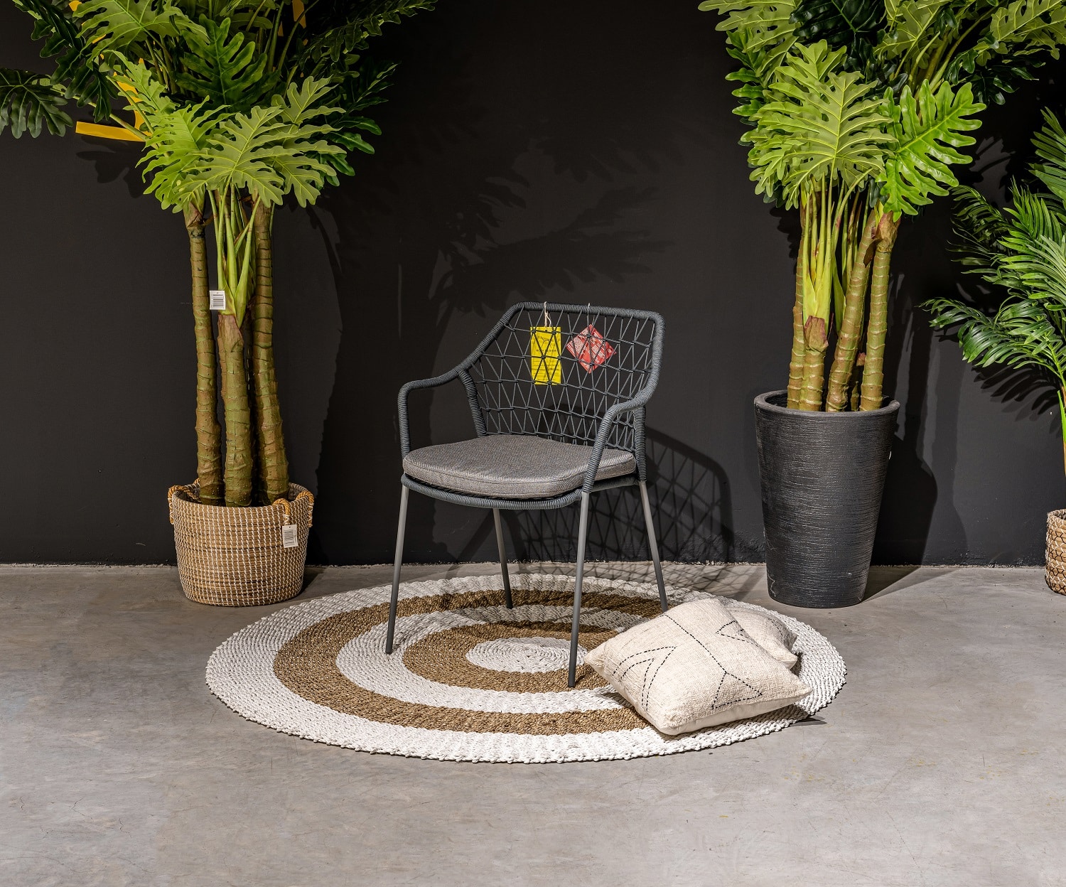חבלים טבעי חאקי, ריפוד קרם, שלדה שחורה. אזל זמנית.