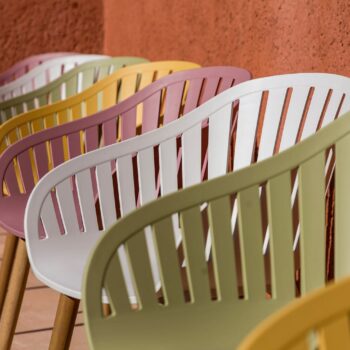 כיסא פלסטיק ABS חזק במיוחד בשילוב רגלי אקליפטוס FSC.