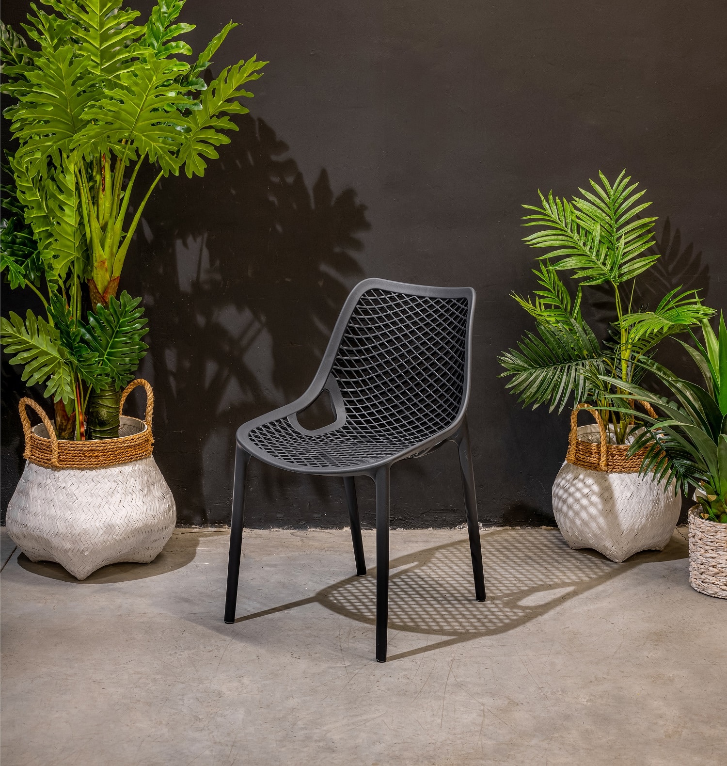 כיסא פלסטיק ABS יצוק בעל גב רשת התורמת לנוחות ואוורור.