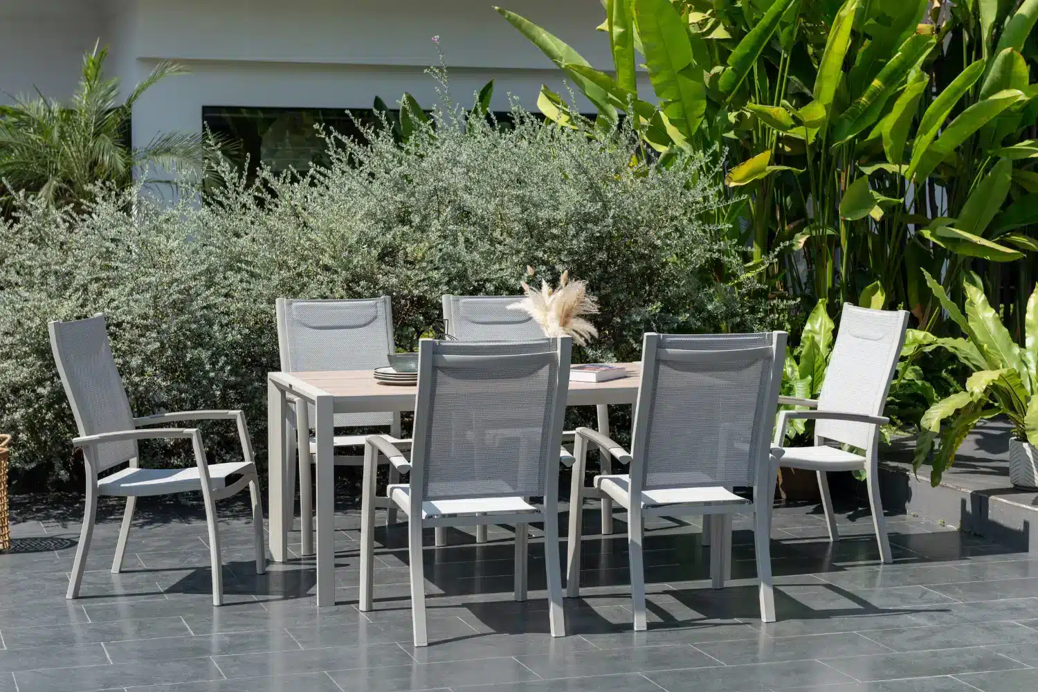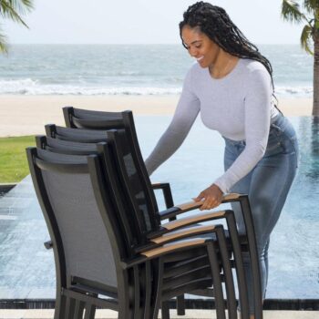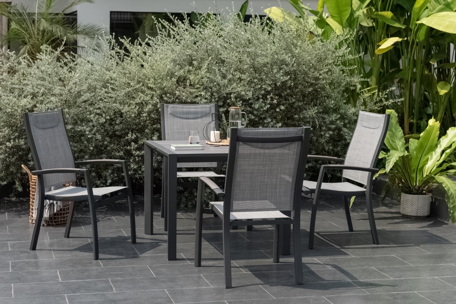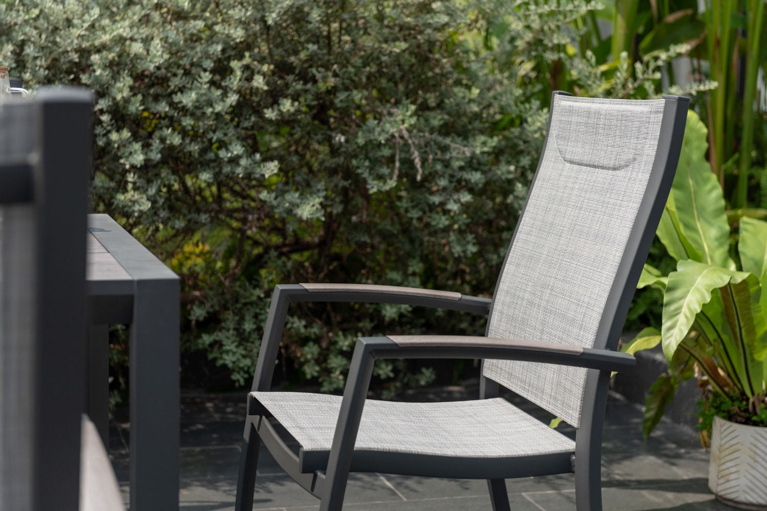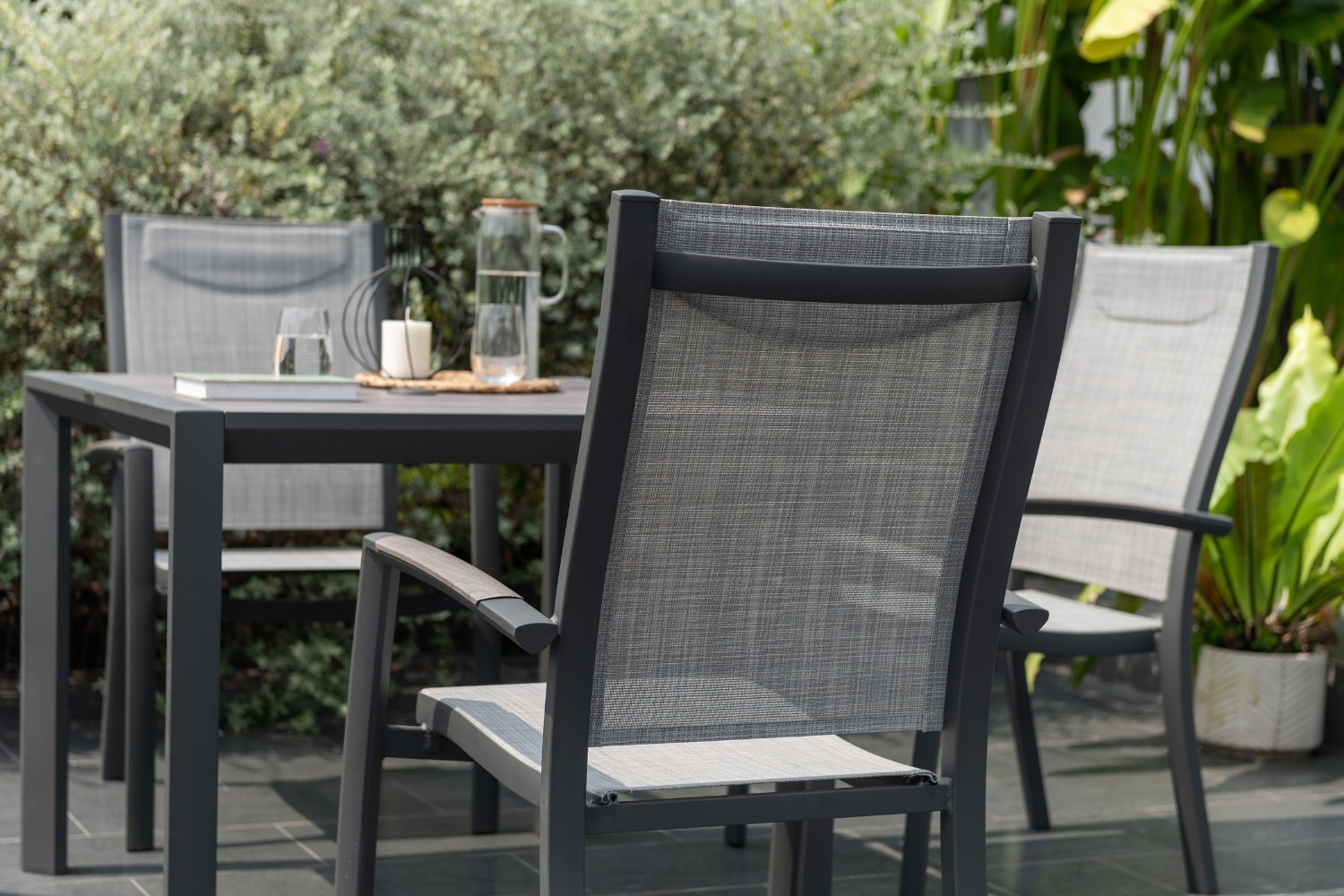 כיסא פנמה המעוצב עם גב מוגבה הוא הבחירה האידיאלית לארוחות קיץ ארוכות באוויר הפתוח.