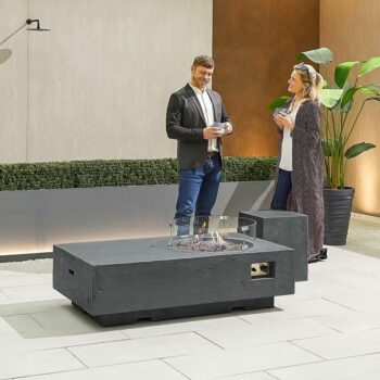 המדורה כוללת מגן רוח זכוכית מחוסמת, כיסוי מתנה, שק אבני לבה וערכת תיקון צבע לבטון. ניתן להוסיף כיסוי נירוסטה בתוספת 500 ש”ח.