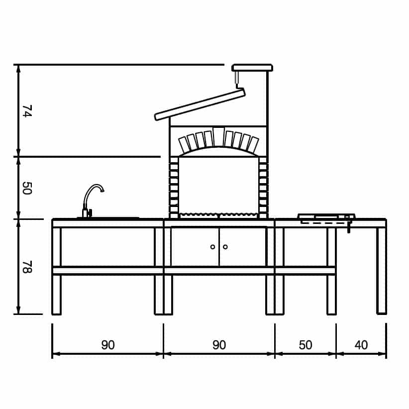 מטבח חוץ באורך 2.7 מטר, גובה 205 סמ.
