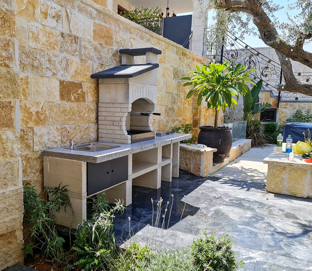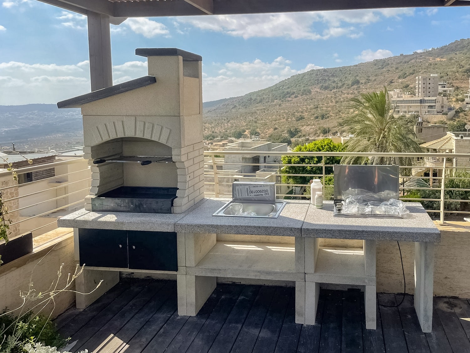 המטבח מורכב מגריל אבן בנוי בתוספת יחידת כיור מנירוסטה אשר עמידה לתנאי חוץ.