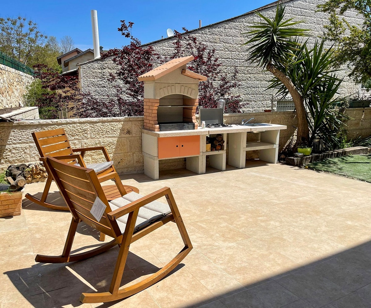 המטבח מורכב מגריל אבן בנוי בתוספת יחידת כיור מנירוסטה אשר עמידה לתנאי חוץ.