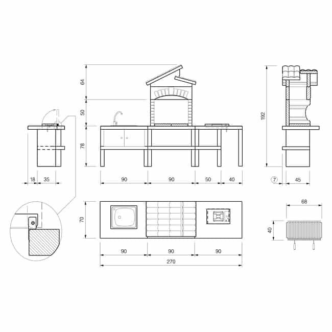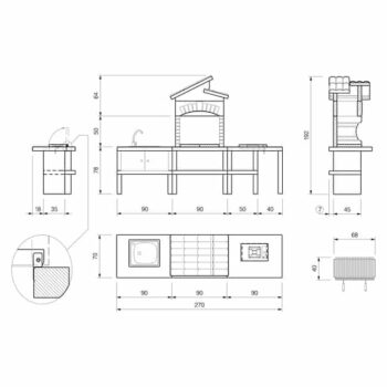 מטבח חוץ באורך 2.70 מטר. ניתן להאריך בתוספת תשלום.