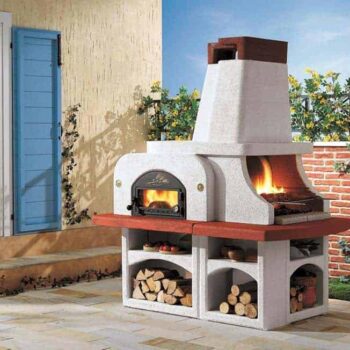 מטבח אבן לגינה משולב טאבון עצים תוצרת PALZZETTI איטליה.