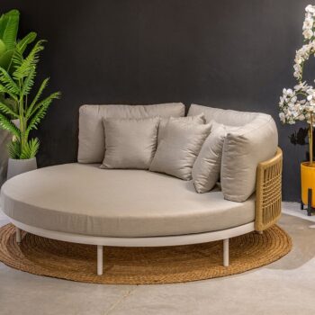 מסגרת חול אבן, חבלים דמוי טבעי, ריפוד אפור קרם.