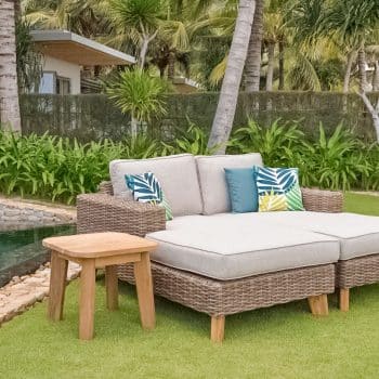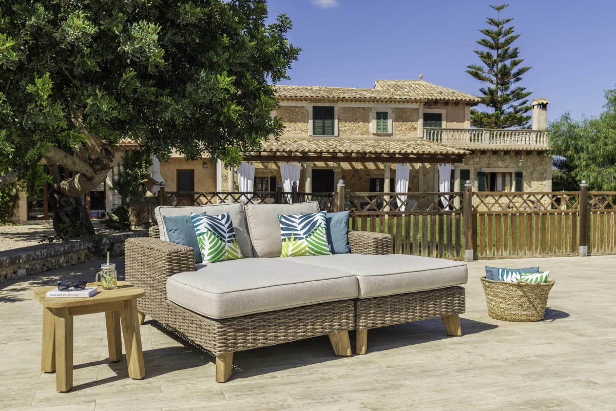 מיטת רביצה מעוצבת ומהממת במיוחד הבנויה משלדת אלומיניום “אל חלד” בחפוי ראטן סינטטי עבה דמוי טבעי.