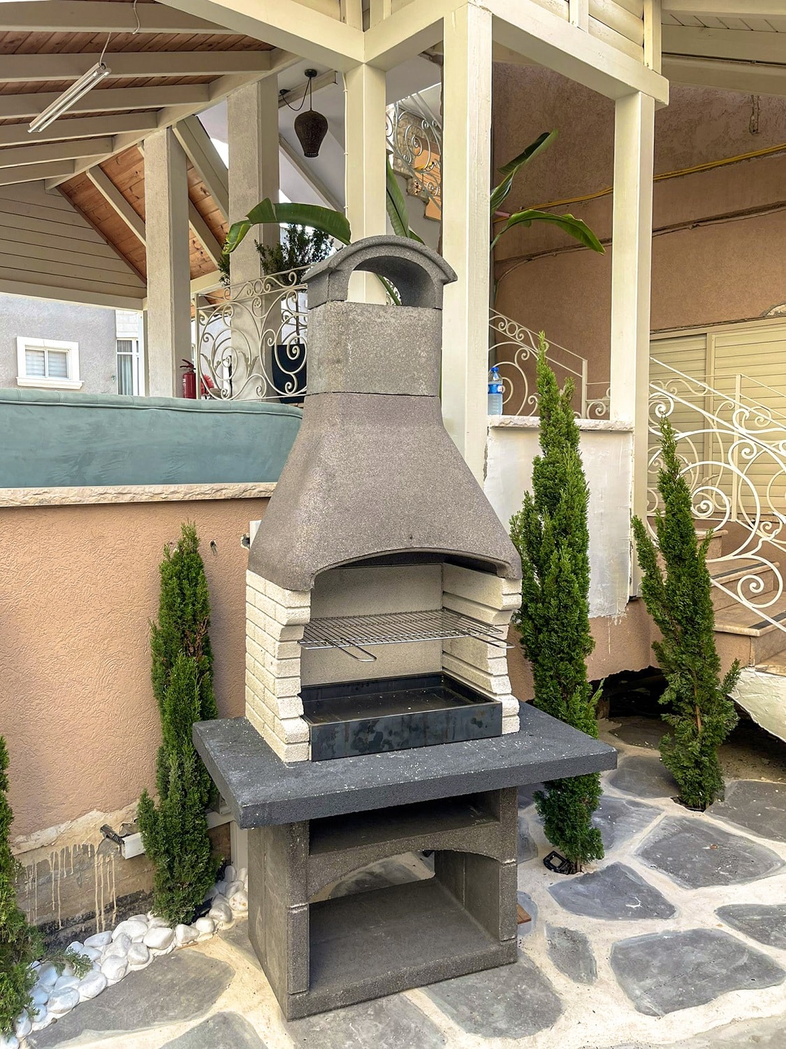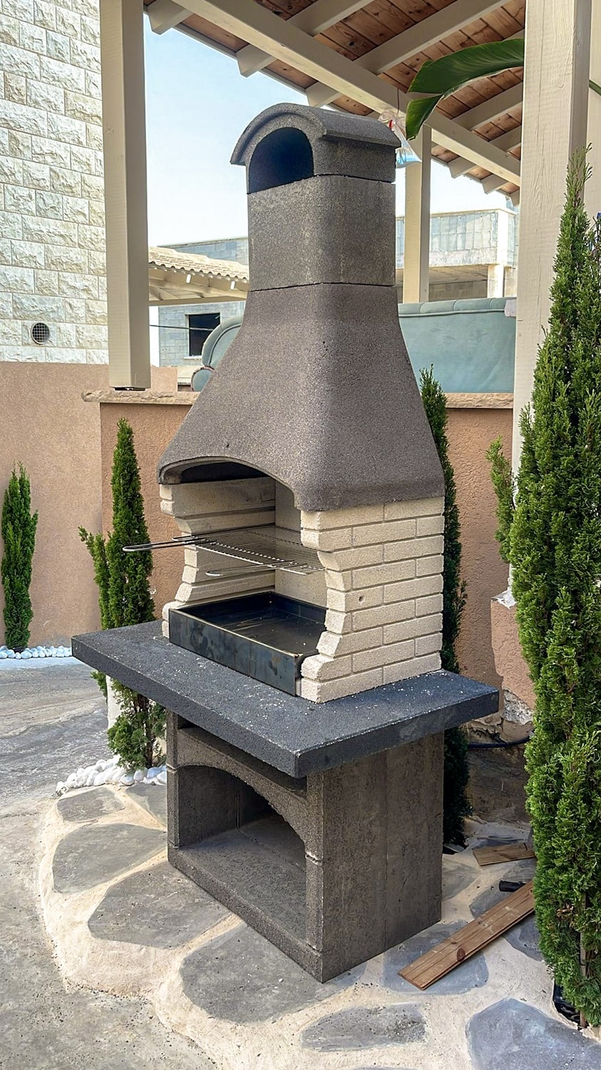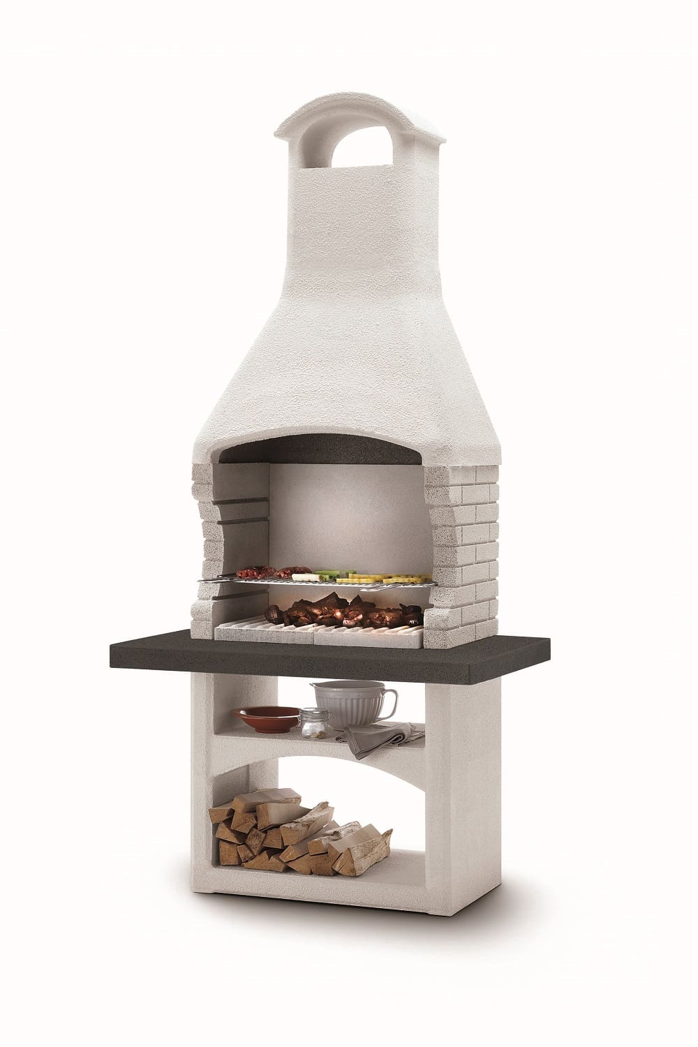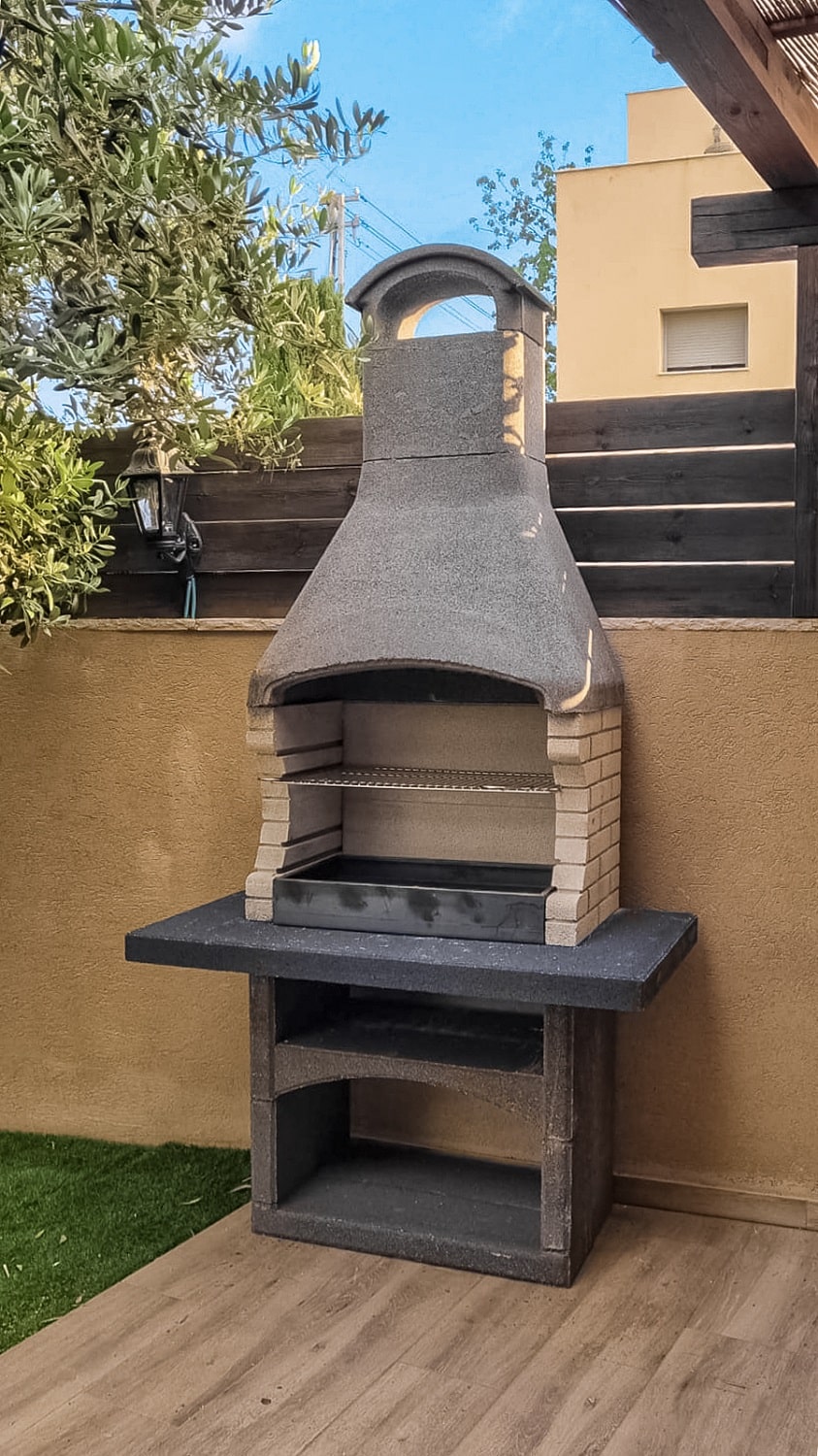 מעוצב בצורה כפרית מעודנת. הגריל אבן בנוי מיוצר באיטליה. מותג Palazzetti.