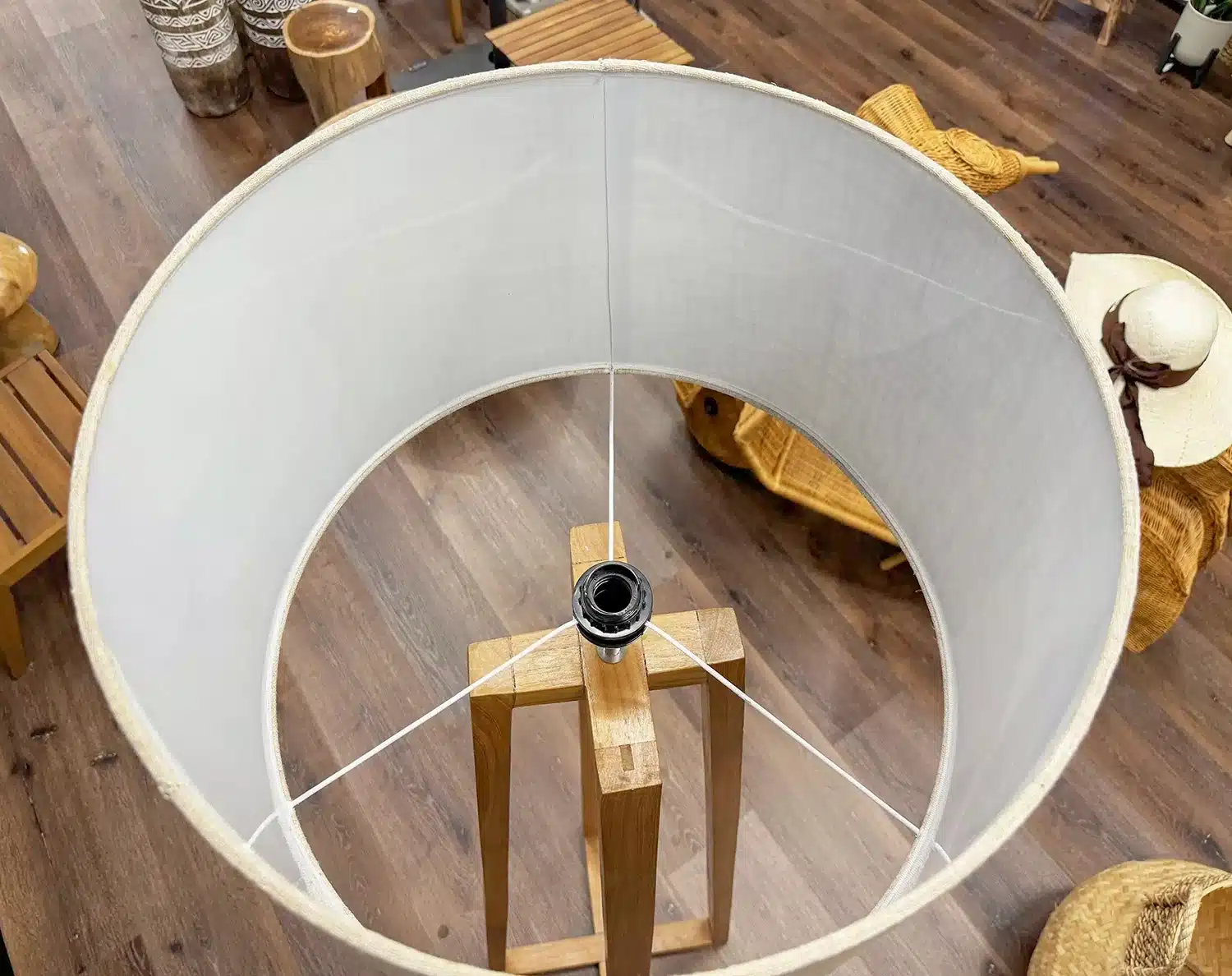 אהיל עשוי מבד בגוון בז’ ורגלים עשויות מעץ טיק מלא איכותי.
