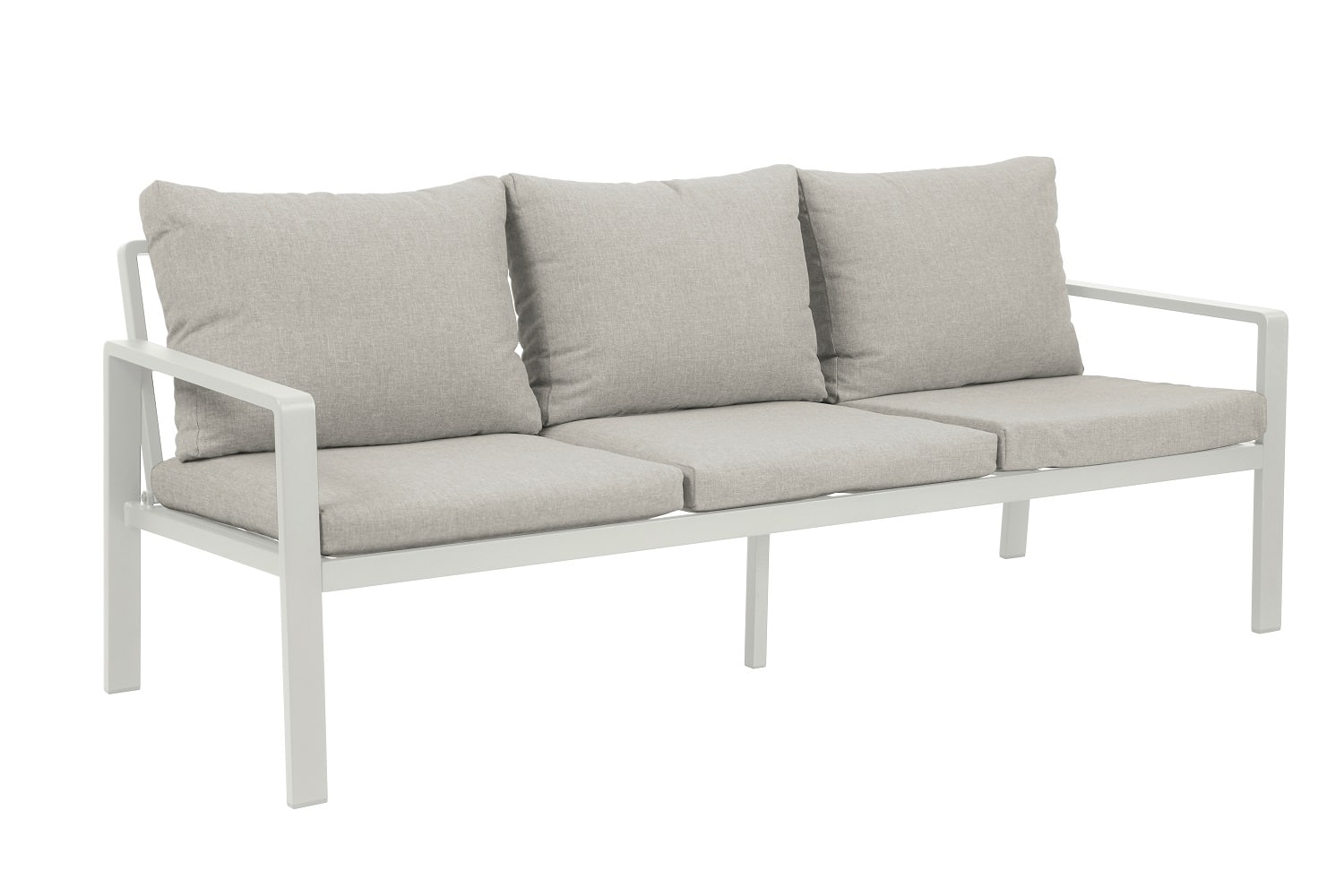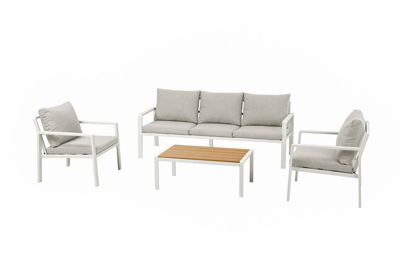 סט ישיבה מעוצב הכולל ארבעה חלקים, עם שלדת אלומיניום בצביעה בתנור בגימור מט.