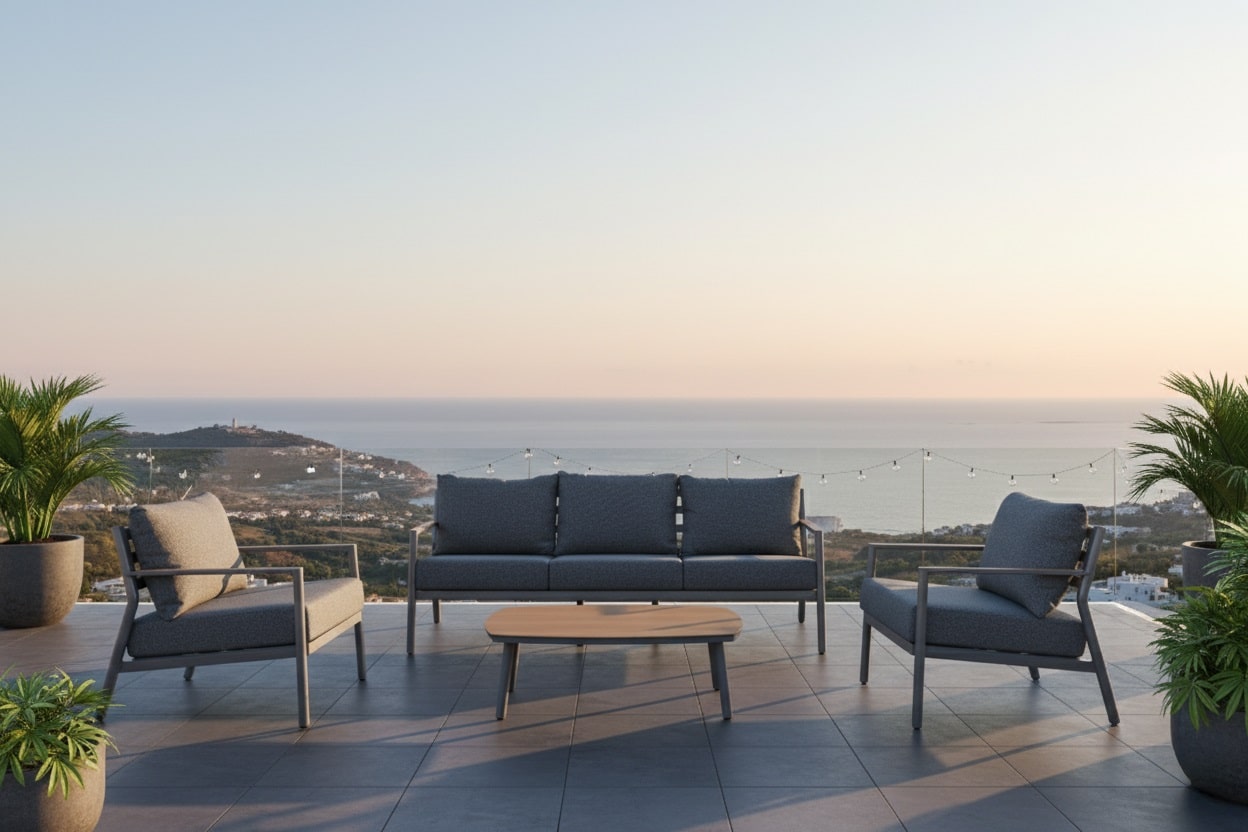 סט ישיבה איכותי מאלומיניום “אל חלד” צבוע בתנור.