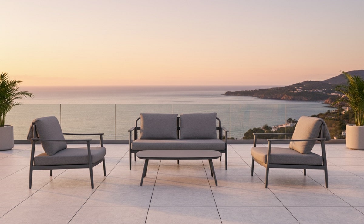 סט ישיבה אלגנטי ומרשים המשלב נוחות, פרקטיות ועיצוב נקי המתאים לכל מרפסת או גינה.