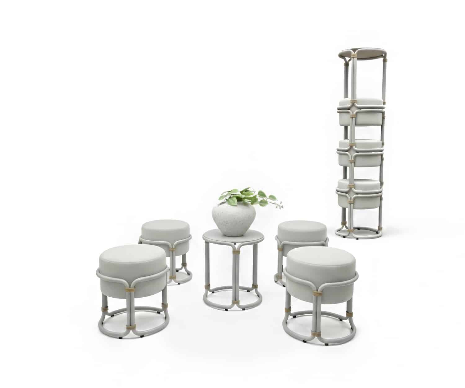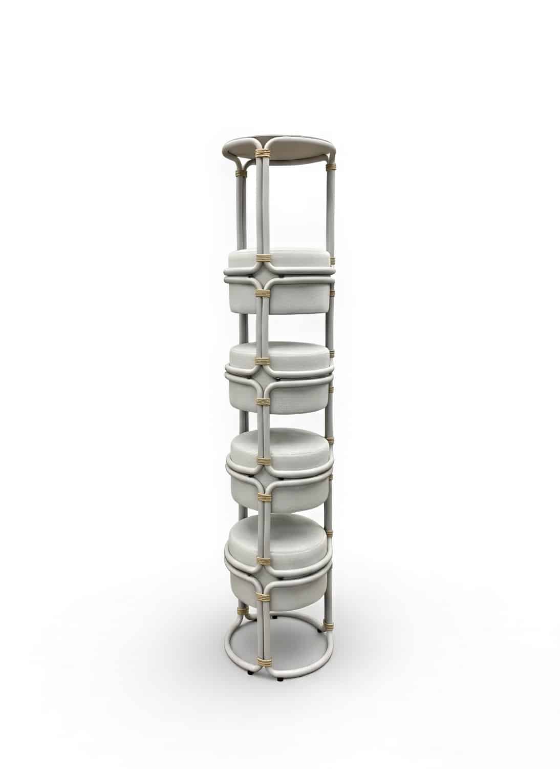השרפרפים נערמים לעמוד דקורטיבי אחד, מה שמאפשר חיסכון מקסימלי במקום ועיצוב ייחודי למרפסת.