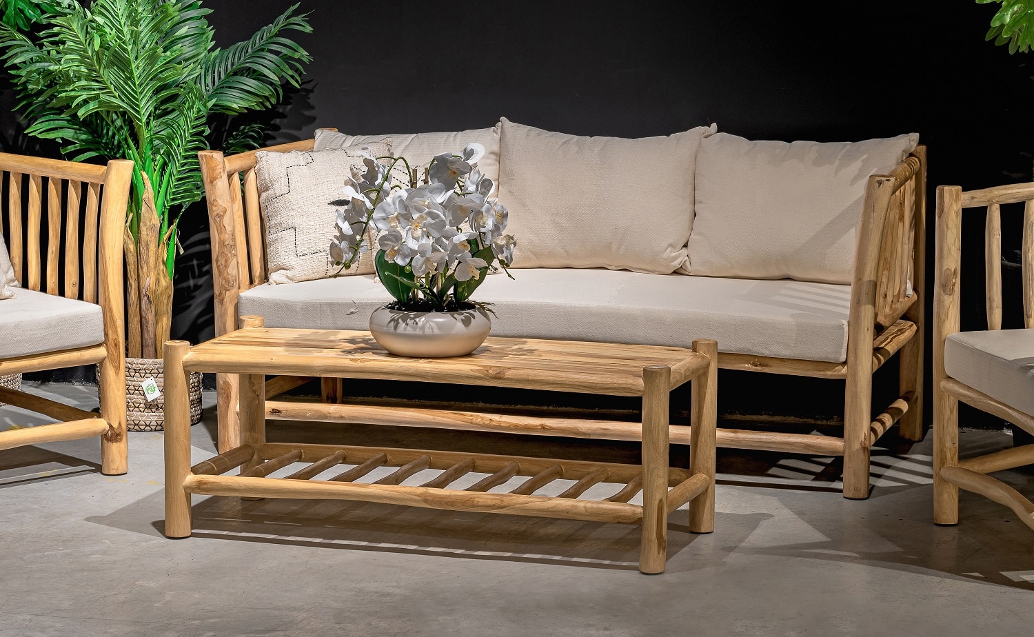 המערכת בנויה מגזעי טיק בשילוב ריפוד רחיץ .