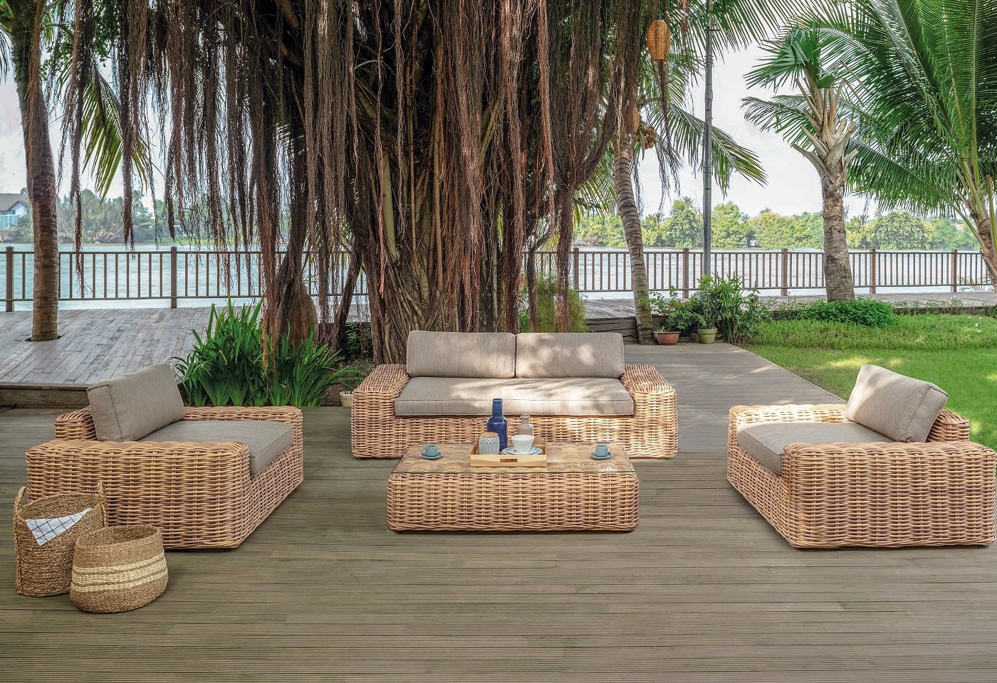 צבעים: ראטן דמוי טבעי, ריפוד אפור