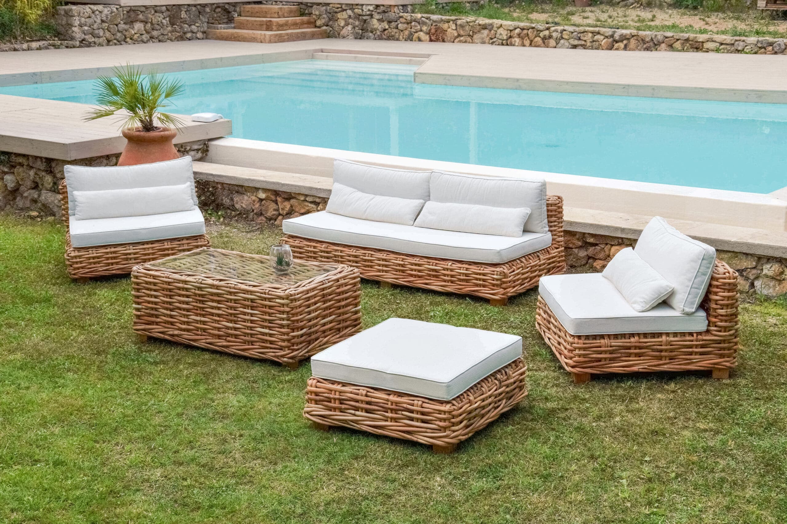 מערכת ישיבה מפוארת מדגם סן ג’רמיין ראטן טבעי.