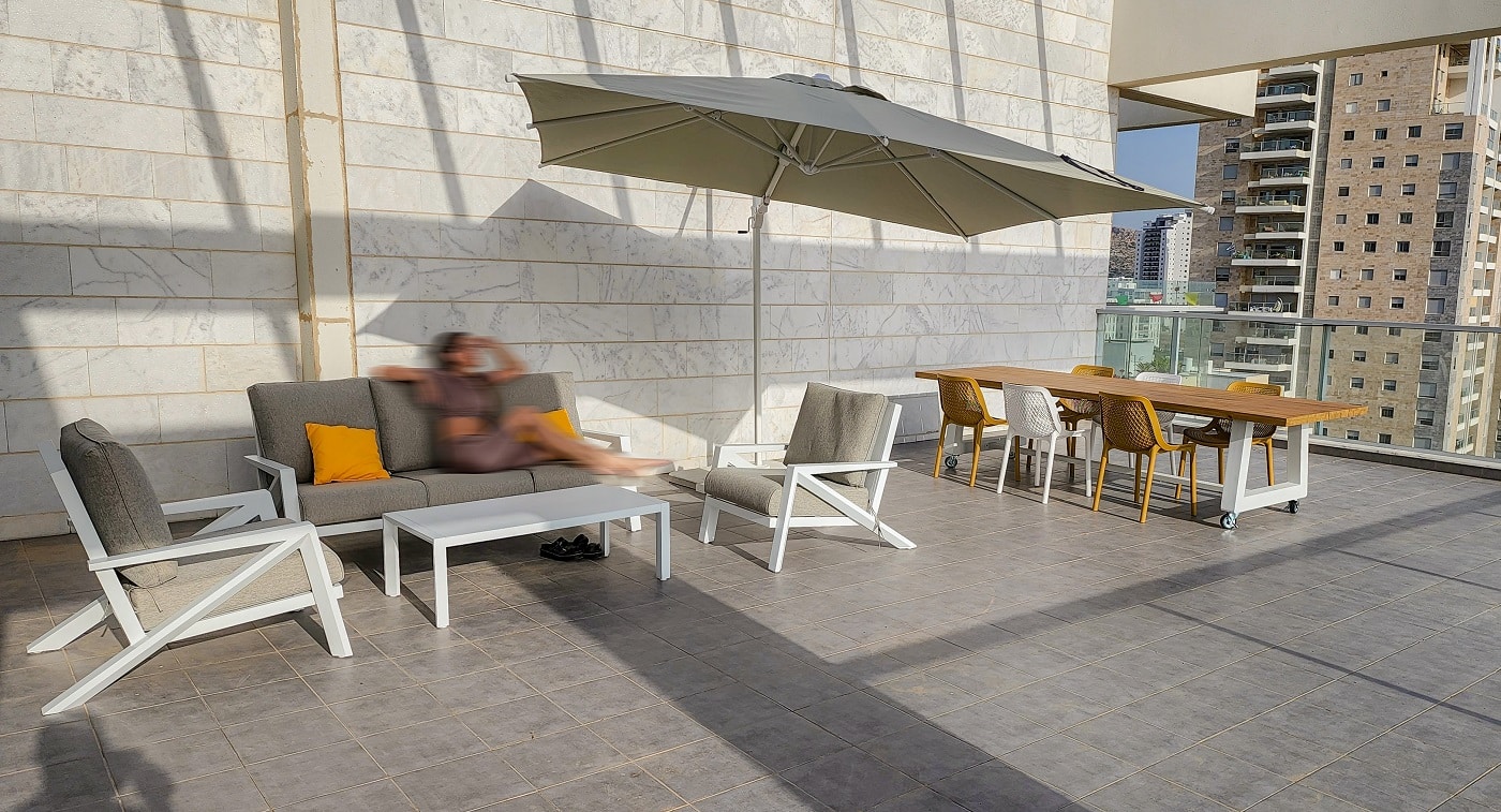 מערכת ישיבה מאסיבית מאלומיניום “אל חלד” לגינה או למרפסת.