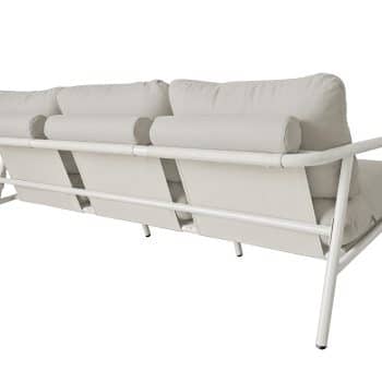 סט ישיבה חוץ במראה טבעי ומעודן, כולל ספת תלת, שתי כורסאות ושולחן קפה.