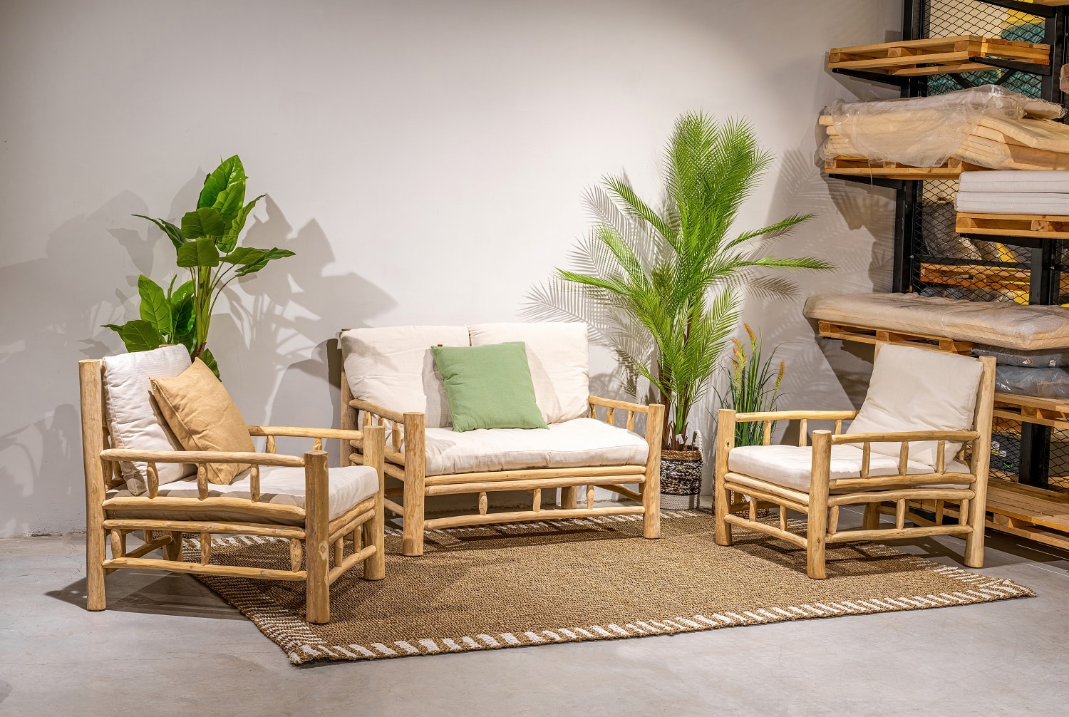 המערכת בנויה מגזעי טיק בשילוב ריפוד רחיץ.