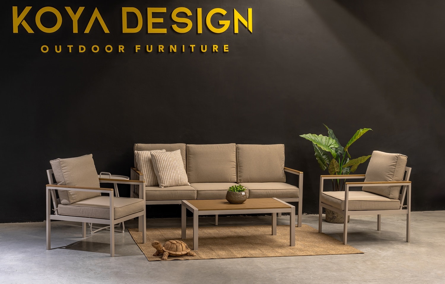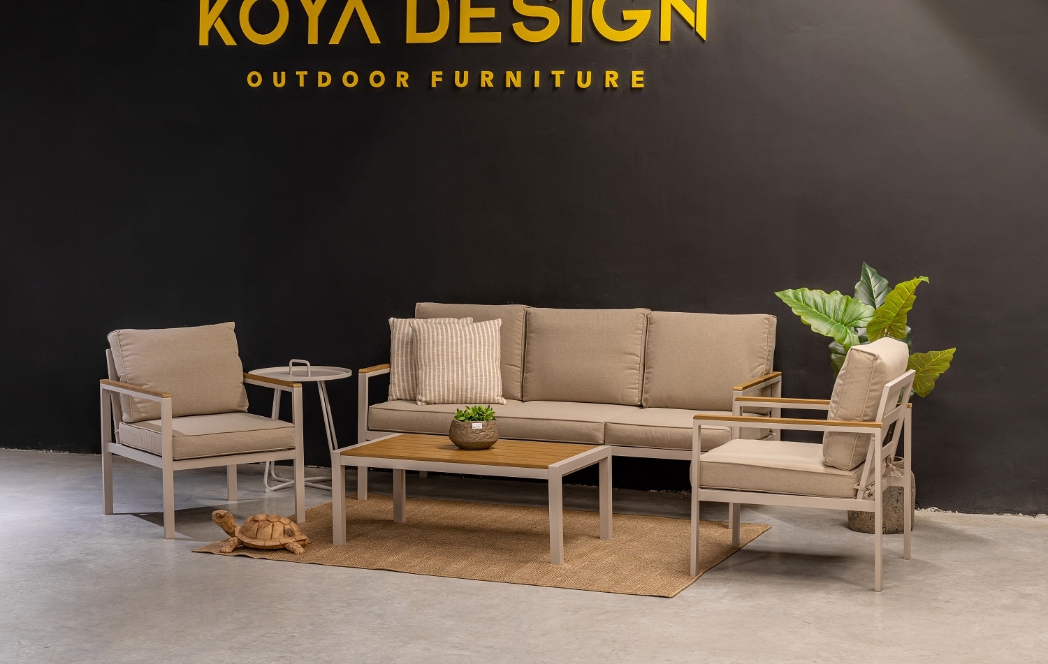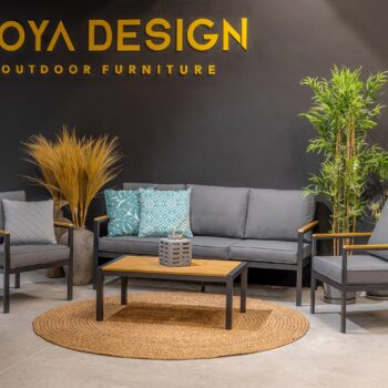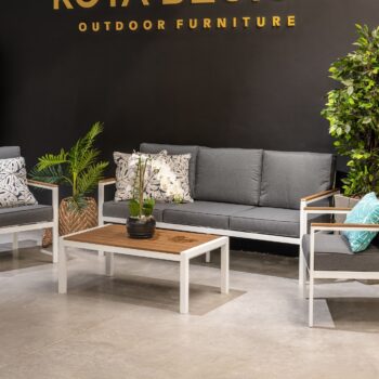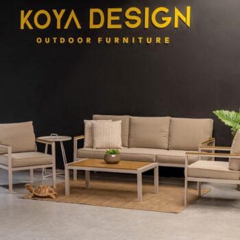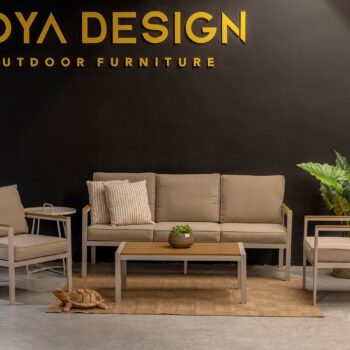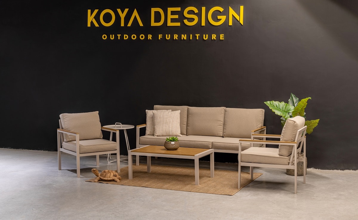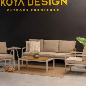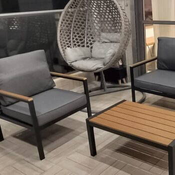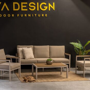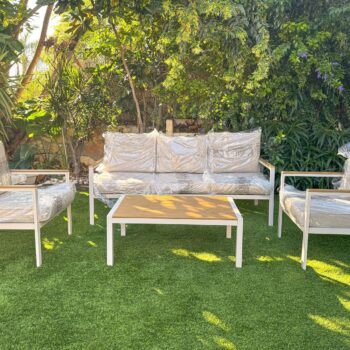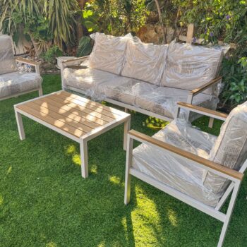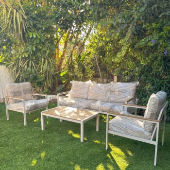 מערכת ישיבה מאלומיניום “אל חלד” הכולל ספה תלת, 2 ספות יחיד ושולחן.