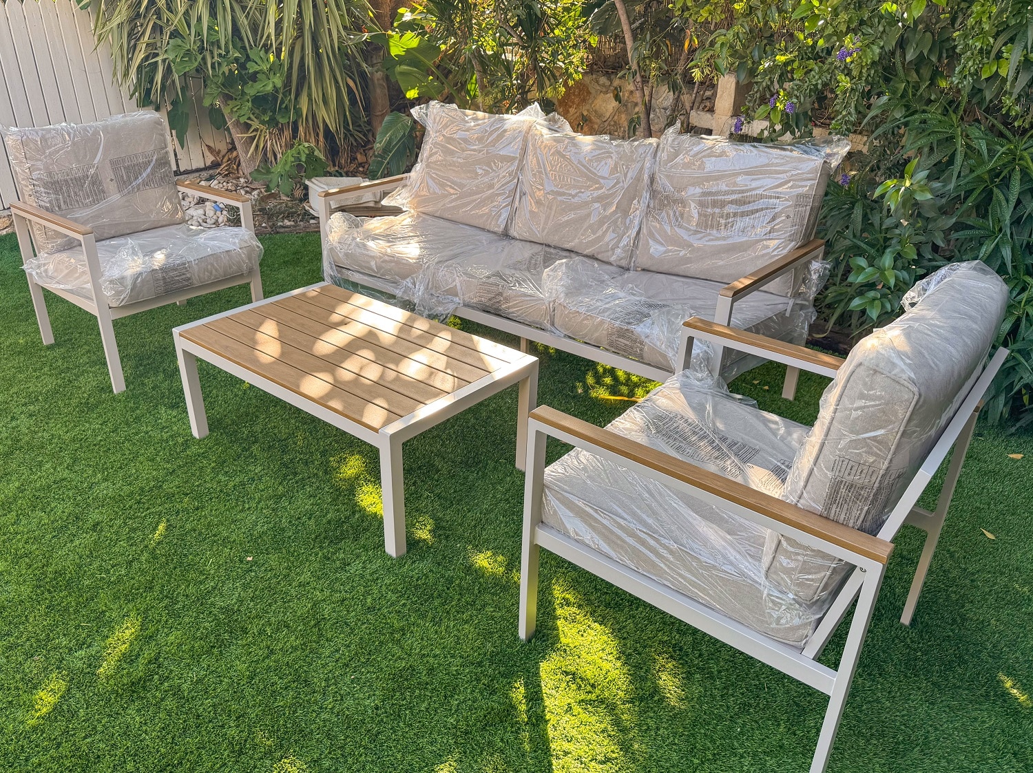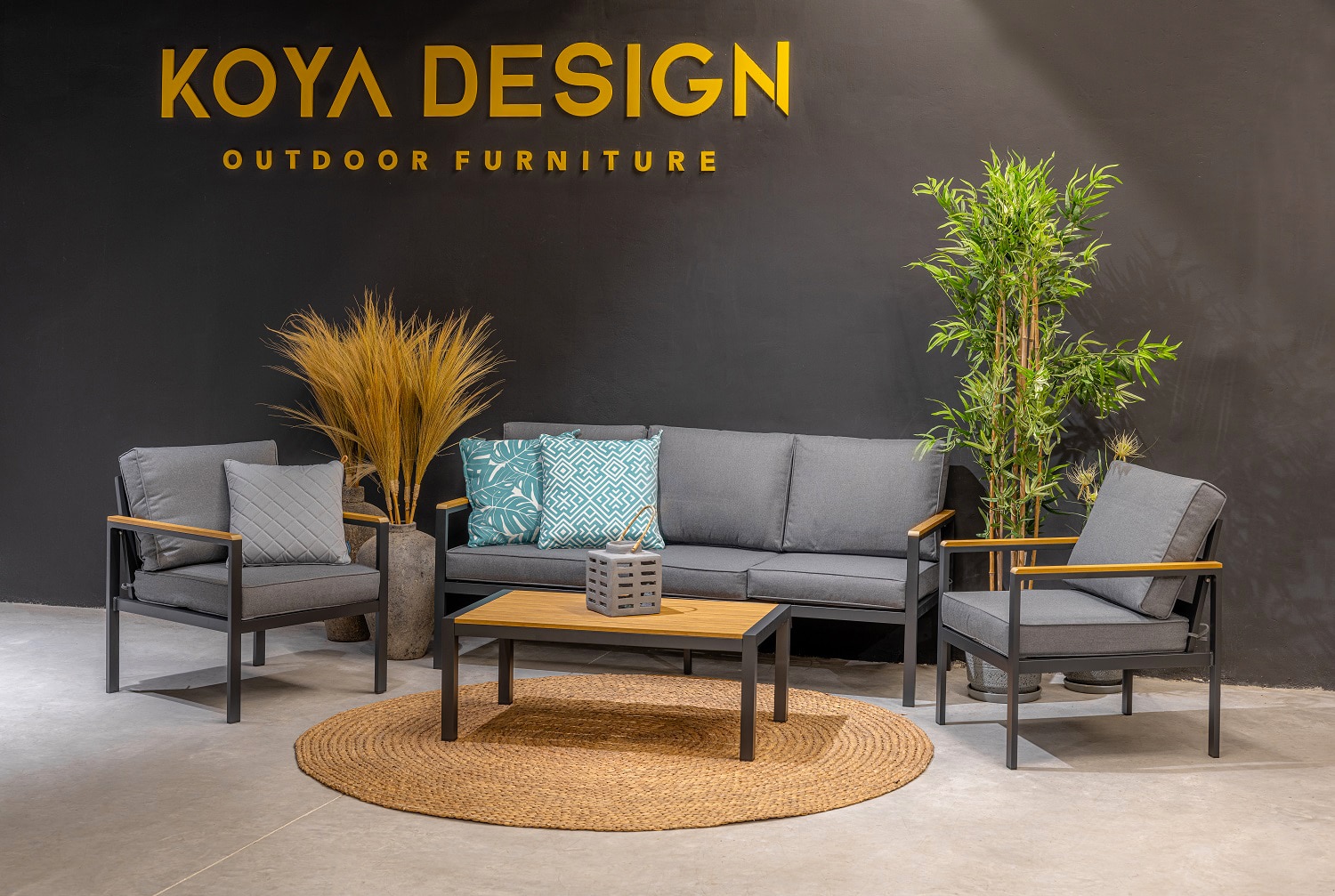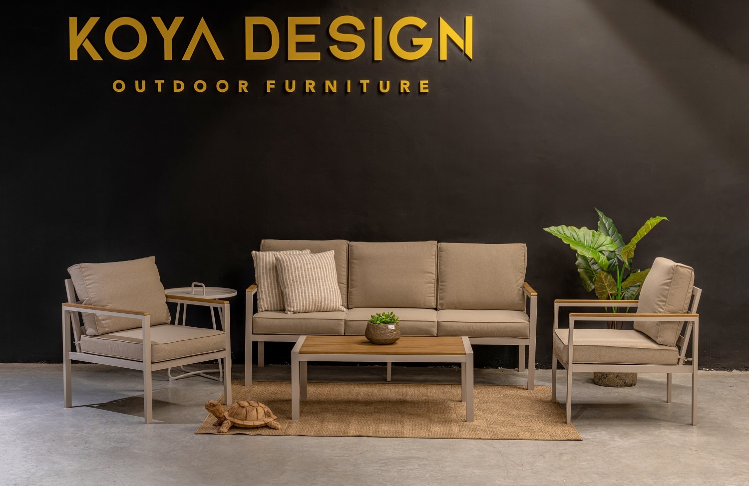 מערכת ישיבה מאלומיניום “אל חלד” הכולל ספה תלת, 2 ספות יחיד ושולחן.