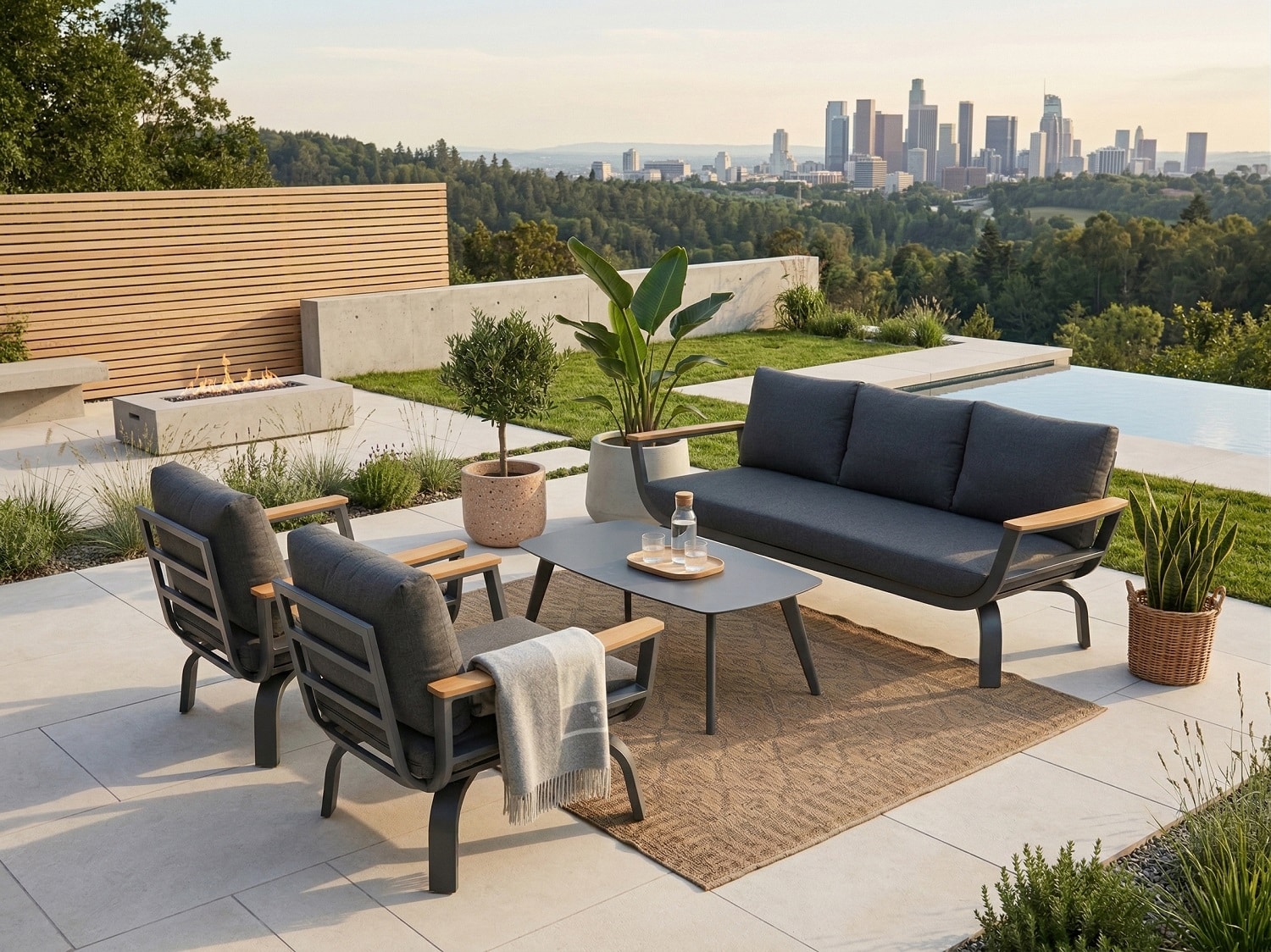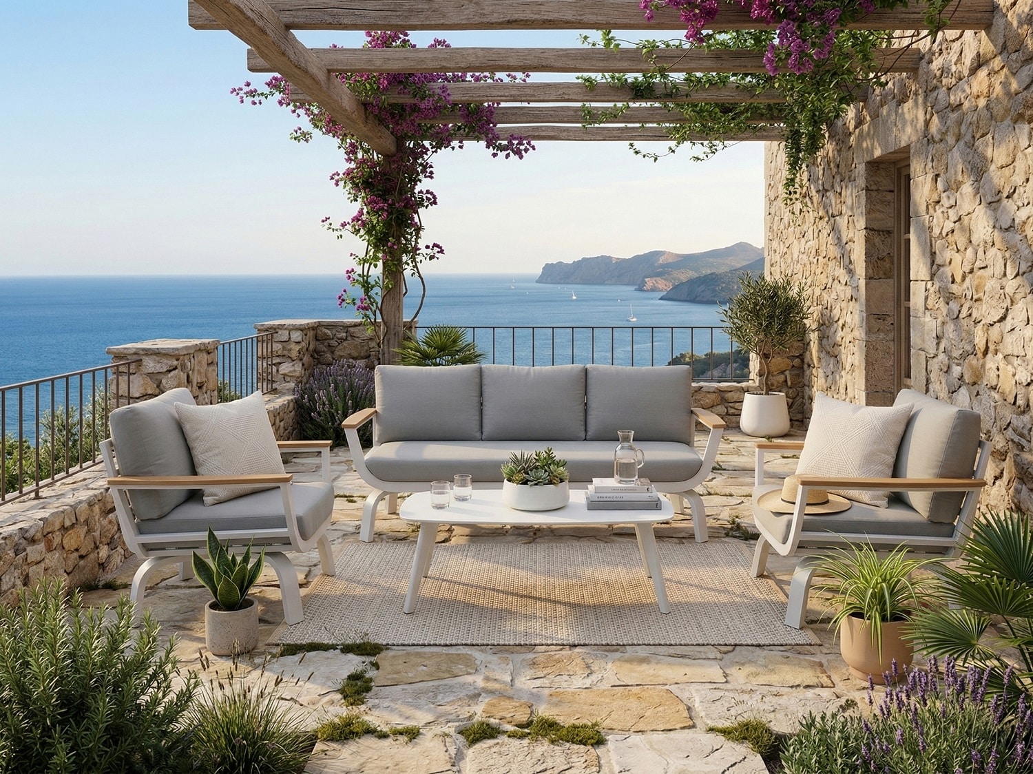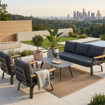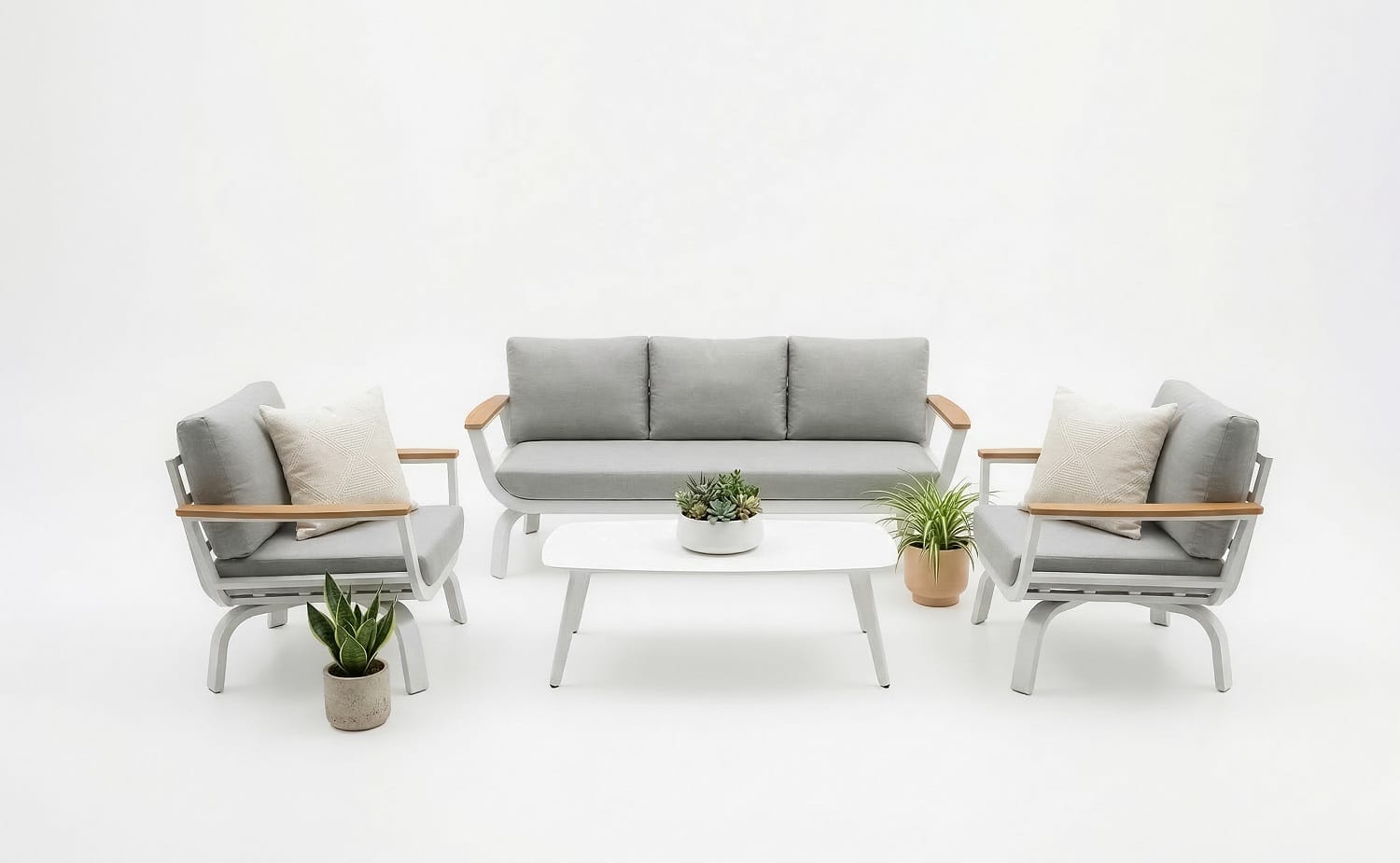 מערכת ישיבה נוחה במיוחד הבנויה משלדת אלומיניום “אל חלד” בשילוב ידיות גדולות ורחבות PVC דמוי עץ טיק.