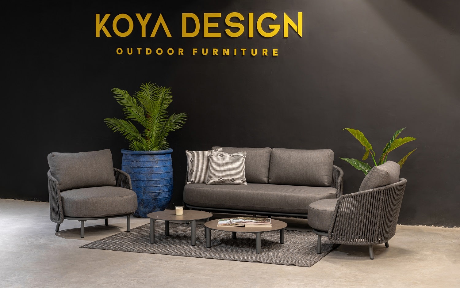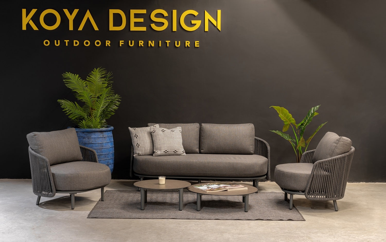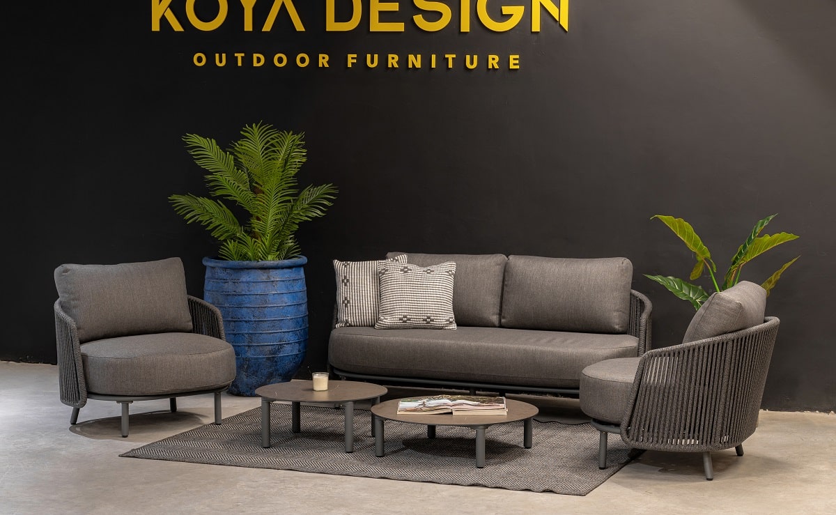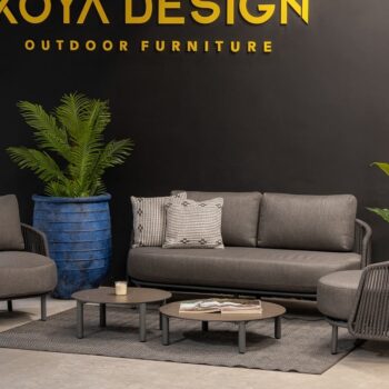 מערכת ישיבה חוץ בעיצוב מינימליסטי הבנויה מחומרי גלם איכותיים במיוחד.