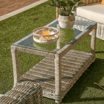 שולחן קפה עם משטח זכוכית מחוסמת.
