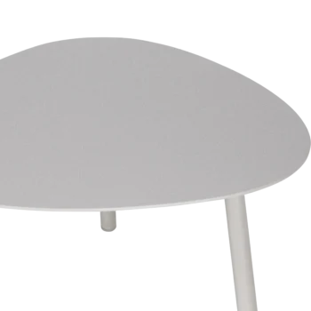 שולחנות מעוצבים עם משטח זכוכית מחוסמת בציפוי אלומיניום.