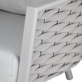 שלדת אלומיניום אל-חלד צבועה בתנור בשילוב קליעת חבלי סלינג UV יוקרתית במראה מודרני.
